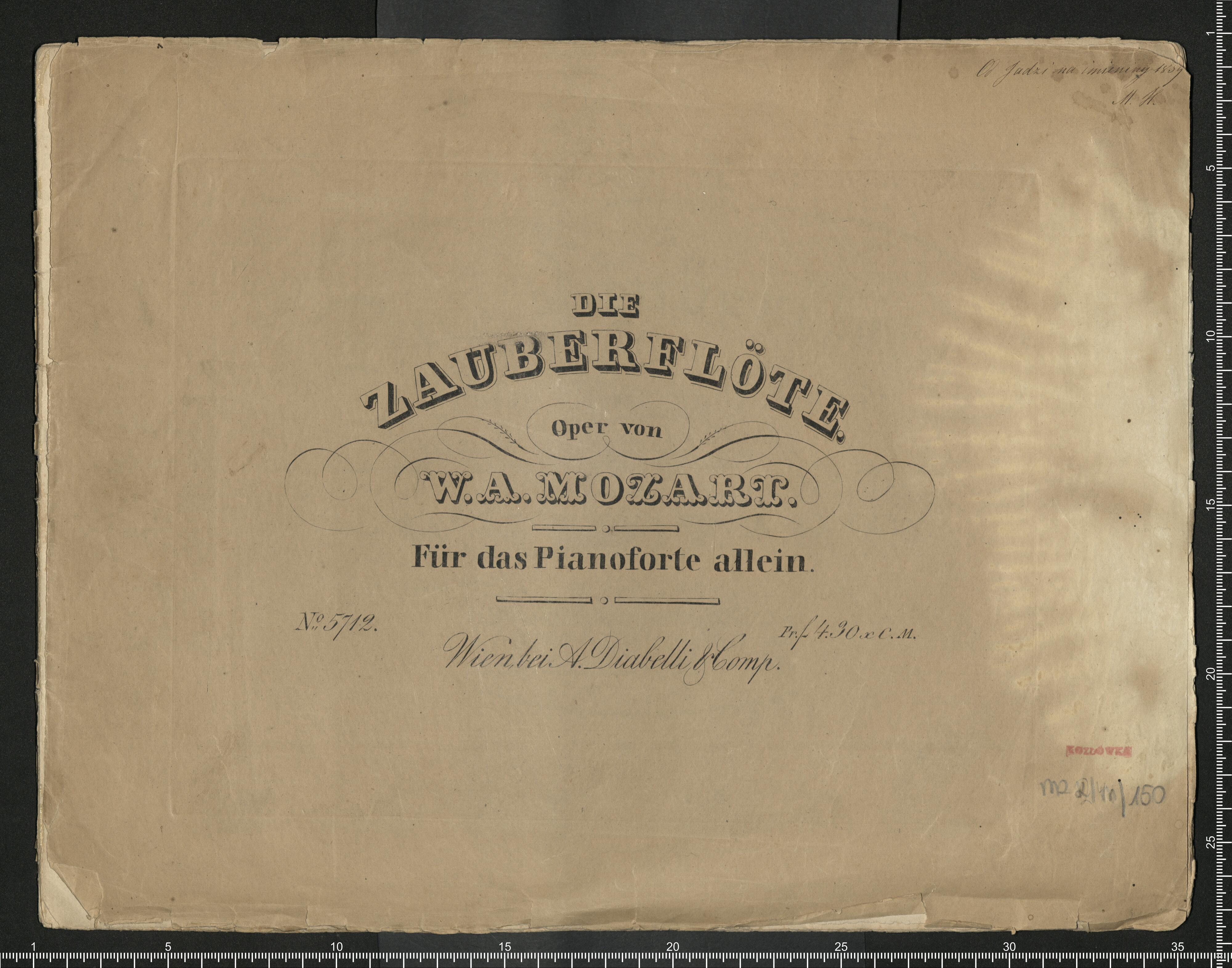 Die Zauberflöte | Grosse Oper in 2 Akten | Musik von | W.A. MOZART | Vollständiger Auszug | für das Pianoforte allein. | N°. 5712 WIEN Pr. f 4.30 x C. M. | BEI Ant. Diabelli und Comp. | Graben N°. 1133