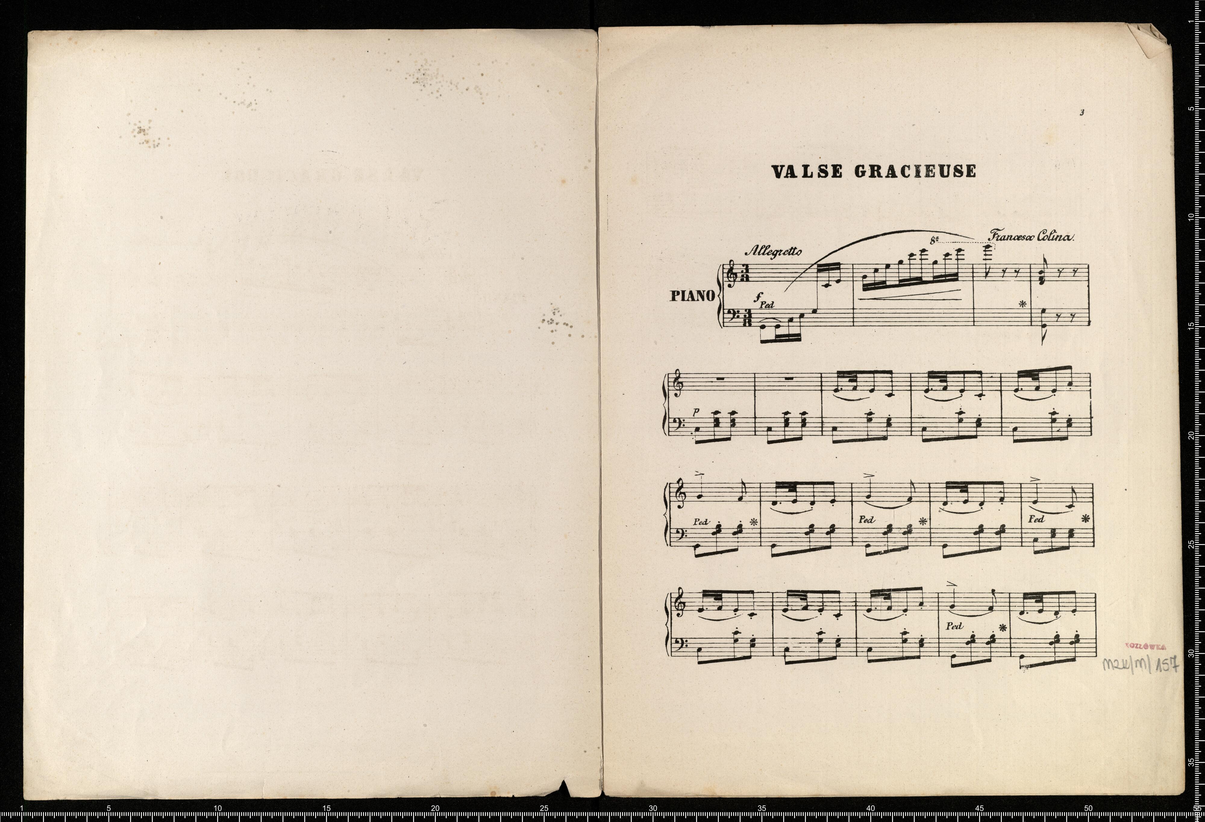 Valse gracieuse | d'après un thême | DEL'OPÉRA ,,TRAVIATA" DE VERDI | (Parigi, o caro, noi lasceremo etc) | pour Piano par | FRANCESCO COLLINA. | Op. 4. | VARSOVIE, CHEZ J. MÜLLER | rue des Senateurs N° 467b
