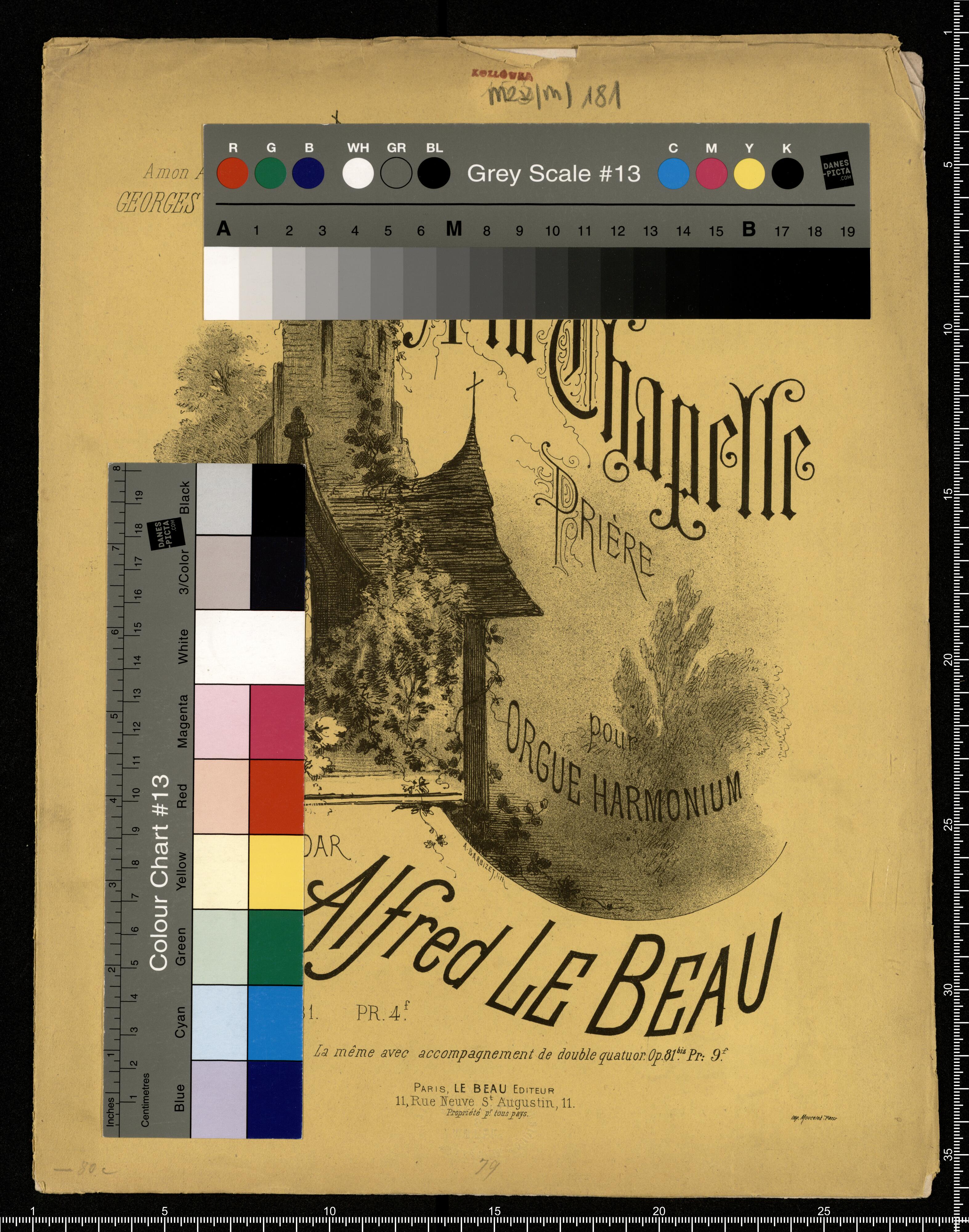 SOUVENIR de LICHTENTHAL | A mon Ami | GEORGES STERN | A la Chapelle | PRIÈRE | pour | ORGUE HARMONIUM | PAR Alfred LE BEAU | OP.81. PR.4.|f | La même avec accompagnement de double quatuor. Op 81.|b|i|s Pr: 9.|f | PARIS, LE BEAU EDITEUR | 11, RUE NEU[fragment illegible due to sticked cover]|t Augustin, 11. | Propriété p.|f tous pays. | Imp. Moucelot. Paris