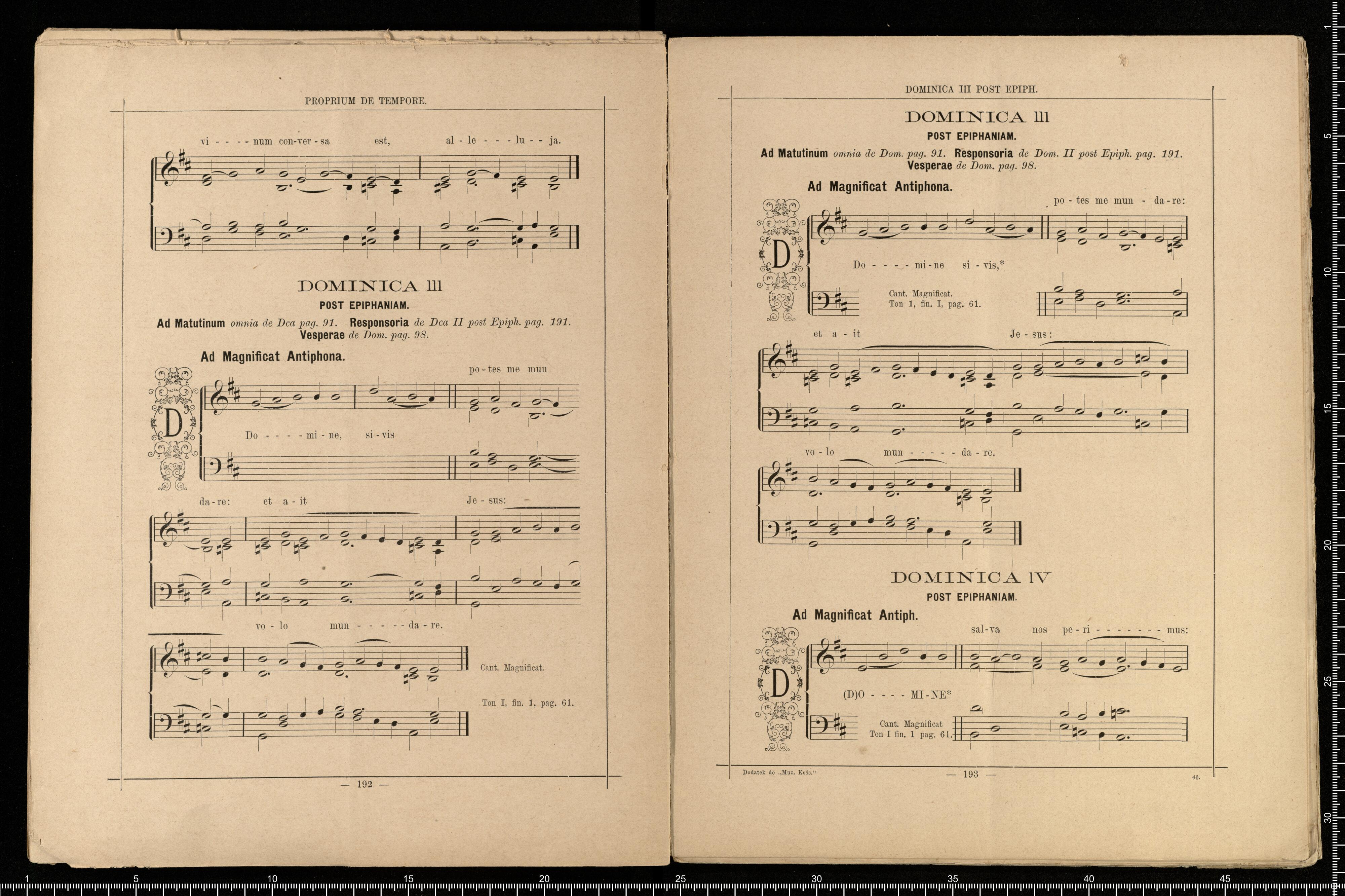 [title page:] Dodatek do III rocznika Muzyki Kościelnéj. | DIRECTORIUM CHORI | czyli | ZBIÓR ANTYFON, PSALMÓW, HYMNÓW, WIERSZY I RESPONSORYÓW, | TUDZIEŻ INNYCH MELODYI ROKU KOŚCIELNEGO | W NUTACH DO ŚPIEWU I GRANIA NA ORGANACH | WYDAŁ | Ks. Józef Surzyński | Dr. Św. Teologii. | REGNS CHÓRU I ORGANISTA PRZY KOŚCIELE ARCHIKATEDRALNYM W POZNANIU. | Tomu I poszyt |I. | POZNAŃ. | Nakładem Jarosława Leitgebra