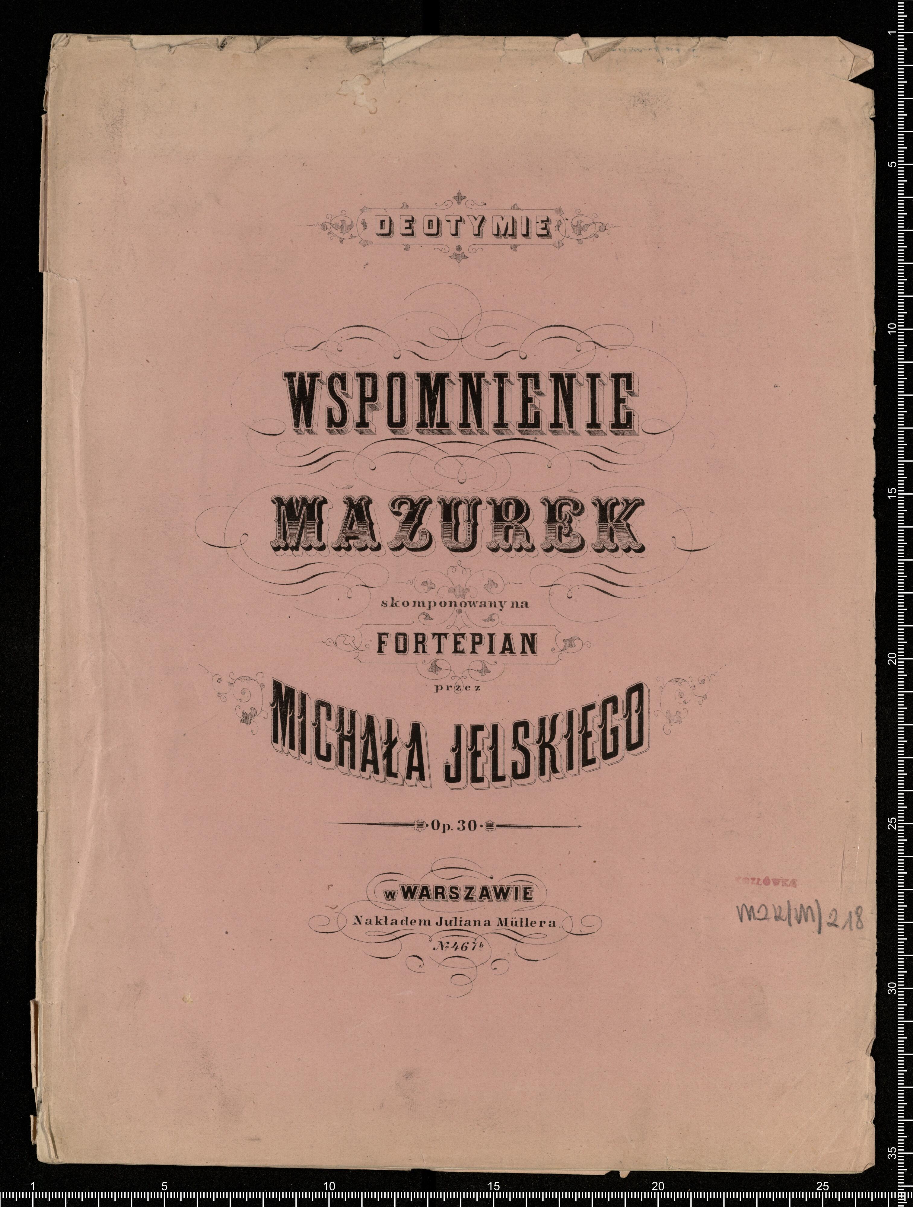 DEOTYMIE | WSPOMNIENIE | MAZUREK | skomponowany na | FORTEPIAN | przez | MICHAŁA JELSKIEGO | Op. 30 | w WARSZAWIE | Nakładem Juliana Müllera | № 467|b