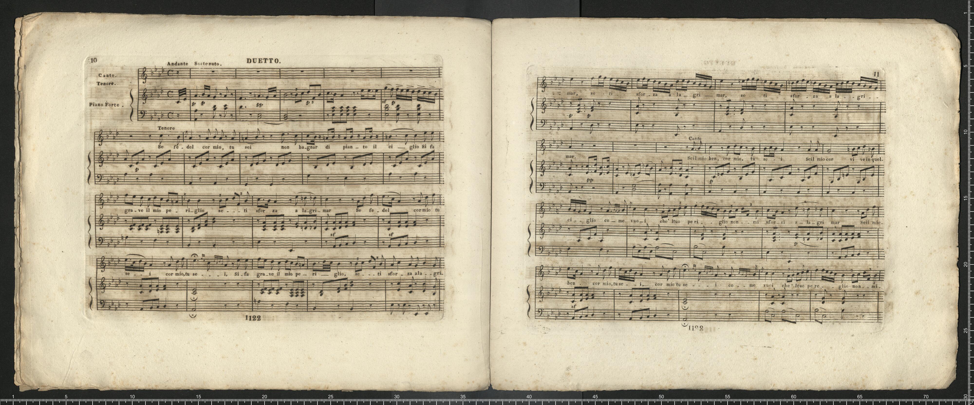 TRE DUETTI | dove due per due Voci di Soprano ed uno per Soprano e Tenore coll' Accompagnamento di Pianoforte | composti dal | SIGNOR CALCARA. | № 1122 Proprietà dell' Editore. Prezzo 16 g: | In Berlino, presso A. M. Schlesinger. | Editore e Mercante di Musica