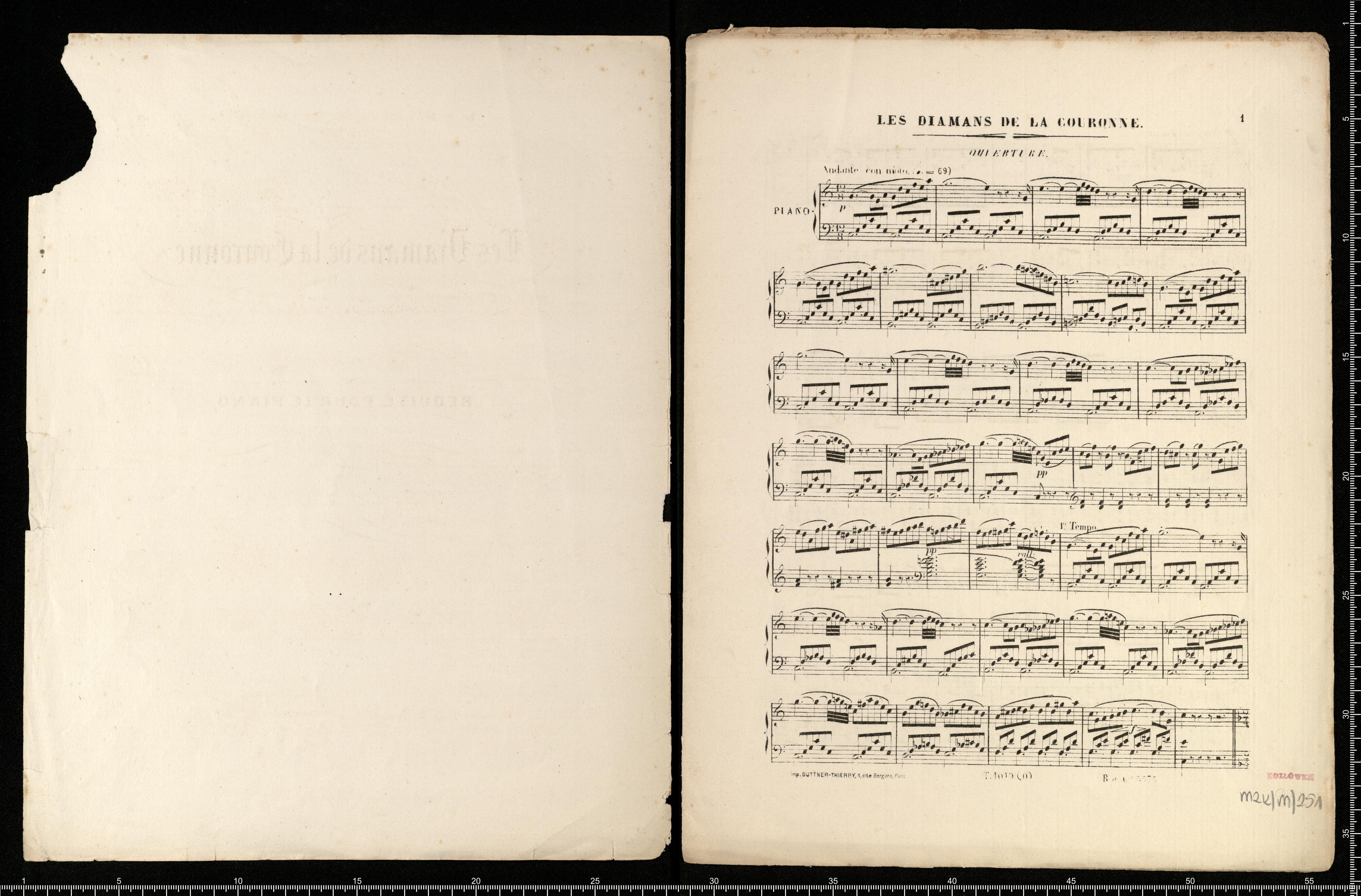 Les Diamans de la Couronne | OPERA DE D.F.E. AUBER | Ouverture | RÉDIUTE POUR LE PIANO | Avec Accompagn. de Violon | ad libitum | par | TH. LABARRE | Prix: 7.[unreadalble] | Paris, G. BRANDUS et S.DUFOUR, éditeurs | Rue [unreadable]