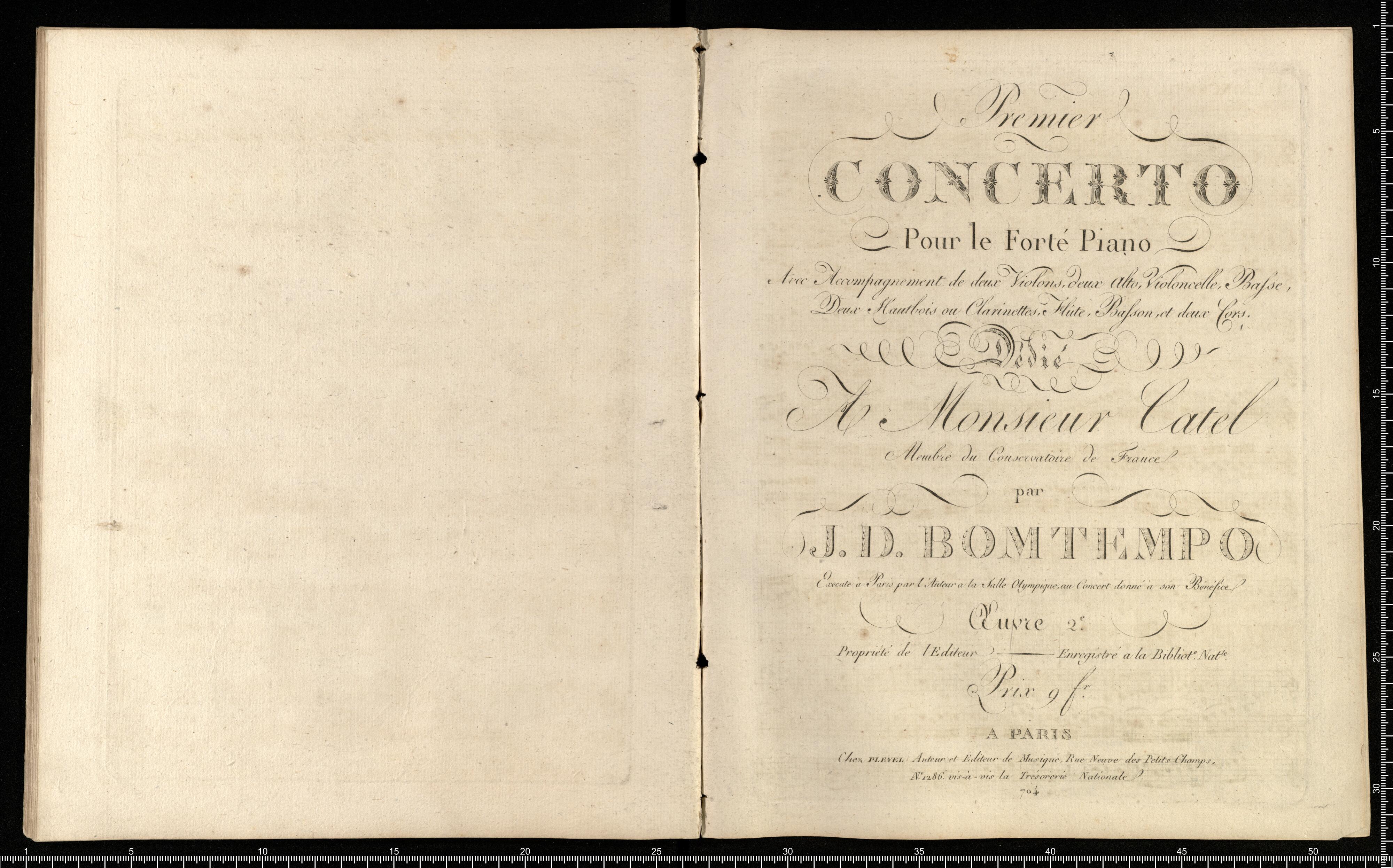 Sixième | CONCERTO | Pour le Forté Piano | Avec Accompagnement d'Orchestre | Composé et Dédié | à Madame Francis George Smyth | Par | J. B. CRAMER | Op. 51. Prix: 9|f | A Paris, | à Paris, Chez M|m|e DUHAN & C|i|e, au Magazin de Musique et d'Instruments, Boulevard | Poissonniere, N|o 10. attenant le Jardin Boulainoilliers aux deux Lyres