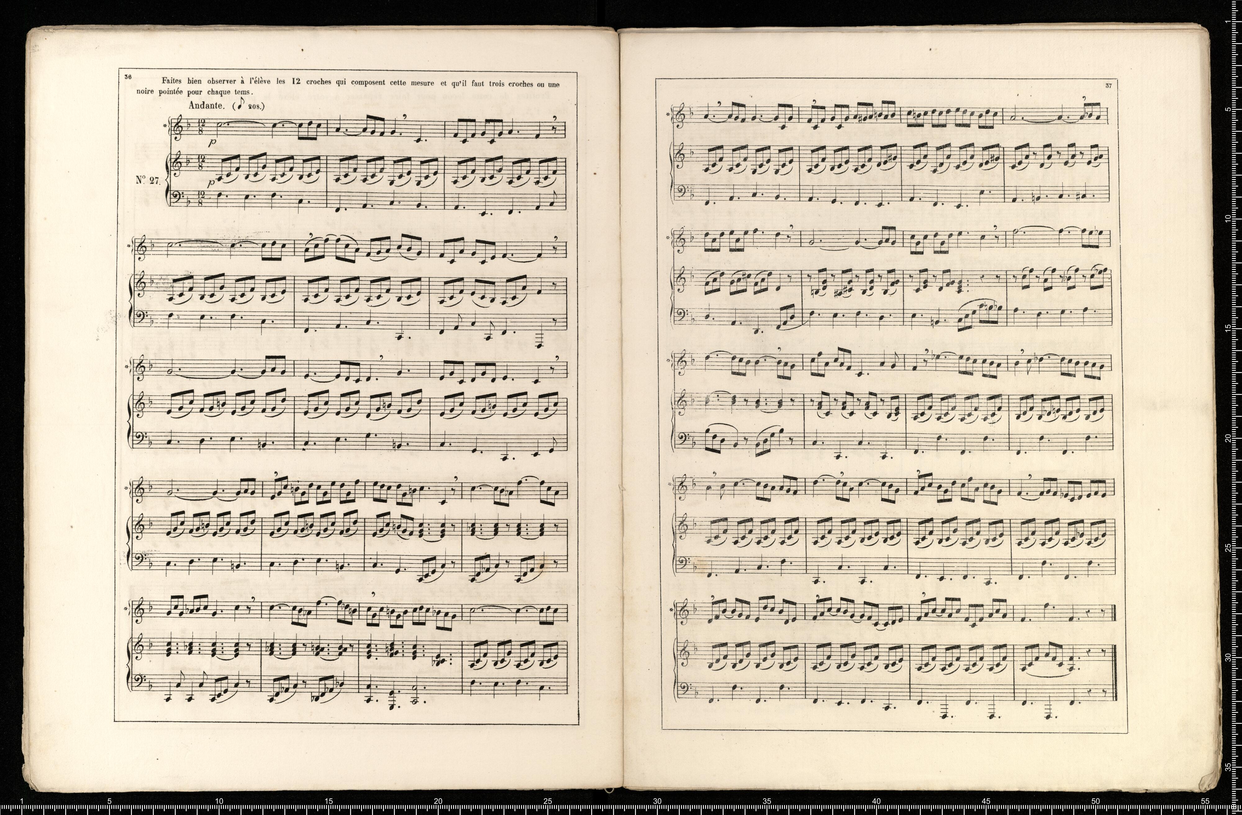 Sùite | DE | L'ABC | MUSICAL | Dédié aux Mères de Famille | OU | SOLFÉGE | AVEC ACCOMPAGNEMENT DE PIANO | COMPOSÉ TOUT EXPRÈS POUR SA PETITE FILLE | PAR | A. Panseron | PROFESSEUR DE CHANT AU CONSERVATOIRE DE MUSIQUE DE PARIS | Chevalier de la Légion-d'Honeur, de l'ordre de la Couronne-deC-Chêne de S. M. le Roi des Pays-Bas | et de l'ordre de l'Aigle-Rouge de S. M. Roi de Prusse | [left column:] Les jeunes élèves qui auront étudié mon ABC | musical trouveront dans ce nouvel œuvre une suite | progressive à leurs études, qui les mettra parfaite- | ment en état de lire la musique de chant et de [right column:] piano, ces deux ouvrages étant également écrits sur | la clef de SOL et sur celle de FA. A la fin de ce | petit Solfége, dont l'entendue ne dépasse pas le FA, | on truvera quelques vocalises faciles. | Prix: 25 francs. | L'ABC et la Suite de l'ABC réunis. Prix: 48 francs. | 3|e EDITION | Paris. | CHEZ L'AUTEUR, QUAI VOLTAIRE, N|o 3, | ET CHEZ TOUS LES MARCHANDS DE MUSIQUE; | Berlin, chez SCHLESINGER; | BRUXELLES, chez NACHER, rue de l'Empereur