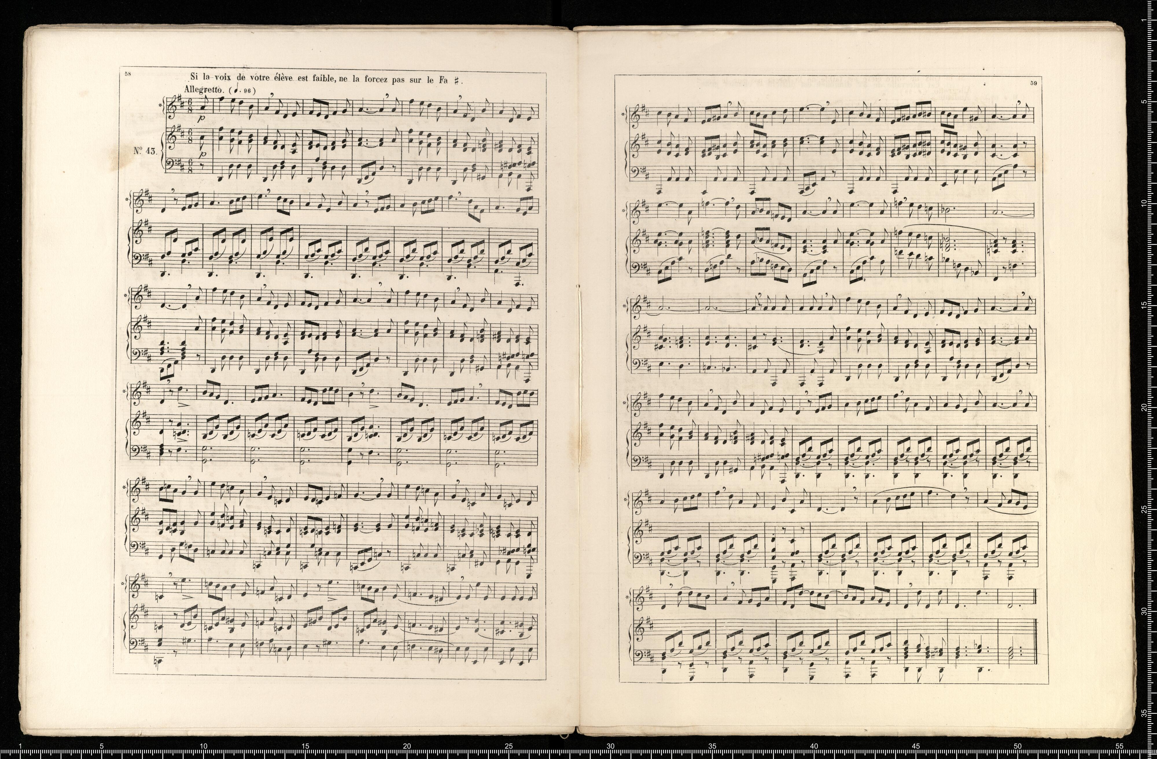 Sùite | DE | L'ABC | MUSICAL | Dédié aux Mères de Famille | OU | SOLFÉGE | AVEC ACCOMPAGNEMENT DE PIANO | COMPOSÉ TOUT EXPRÈS POUR SA PETITE FILLE | PAR | A. Panseron | PROFESSEUR DE CHANT AU CONSERVATOIRE DE MUSIQUE DE PARIS | Chevalier de la Légion-d'Honeur, de l'ordre de la Couronne-deC-Chêne de S. M. le Roi des Pays-Bas | et de l'ordre de l'Aigle-Rouge de S. M. Roi de Prusse | [left column:] Les jeunes élèves qui auront étudié mon ABC | musical trouveront dans ce nouvel œuvre une suite | progressive à leurs études, qui les mettra parfaite- | ment en état de lire la musique de chant et de [right column:] piano, ces deux ouvrages étant également écrits sur | la clef de SOL et sur celle de FA. A la fin de ce | petit Solfége, dont l'entendue ne dépasse pas le FA, | on truvera quelques vocalises faciles. | Prix: 25 francs. | L'ABC et la Suite de l'ABC réunis. Prix: 48 francs. | 3|e EDITION | Paris. | CHEZ L'AUTEUR, QUAI VOLTAIRE, N|o 3, | ET CHEZ TOUS LES MARCHANDS DE MUSIQUE; | Berlin, chez SCHLESINGER; | BRUXELLES, chez NACHER, rue de l'Empereur