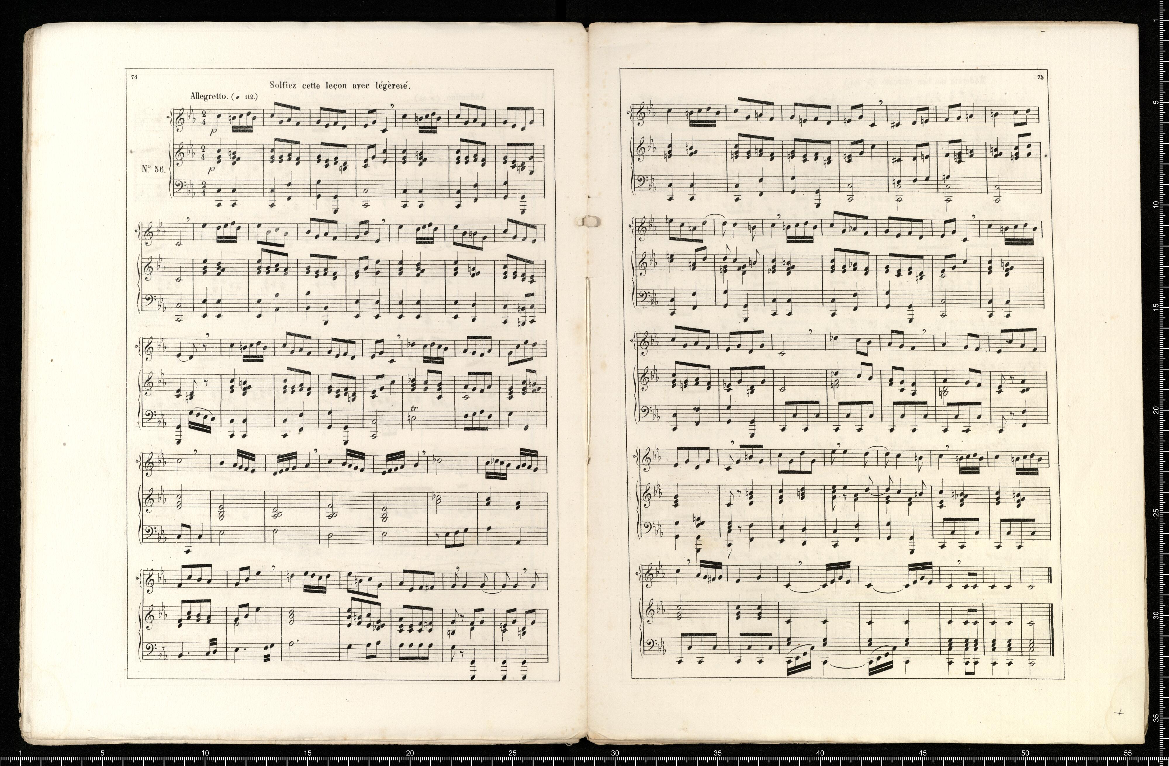 Sùite | DE | L'ABC | MUSICAL | Dédié aux Mères de Famille | OU | SOLFÉGE | AVEC ACCOMPAGNEMENT DE PIANO | COMPOSÉ TOUT EXPRÈS POUR SA PETITE FILLE | PAR | A. Panseron | PROFESSEUR DE CHANT AU CONSERVATOIRE DE MUSIQUE DE PARIS | Chevalier de la Légion-d'Honeur, de l'ordre de la Couronne-deC-Chêne de S. M. le Roi des Pays-Bas | et de l'ordre de l'Aigle-Rouge de S. M. Roi de Prusse | [left column:] Les jeunes élèves qui auront étudié mon ABC | musical trouveront dans ce nouvel œuvre une suite | progressive à leurs études, qui les mettra parfaite- | ment en état de lire la musique de chant et de [right column:] piano, ces deux ouvrages étant également écrits sur | la clef de SOL et sur celle de FA. A la fin de ce | petit Solfége, dont l'entendue ne dépasse pas le FA, | on truvera quelques vocalises faciles. | Prix: 25 francs. | L'ABC et la Suite de l'ABC réunis. Prix: 48 francs. | 3|e EDITION | Paris. | CHEZ L'AUTEUR, QUAI VOLTAIRE, N|o 3, | ET CHEZ TOUS LES MARCHANDS DE MUSIQUE; | Berlin, chez SCHLESINGER; | BRUXELLES, chez NACHER, rue de l'Empereur