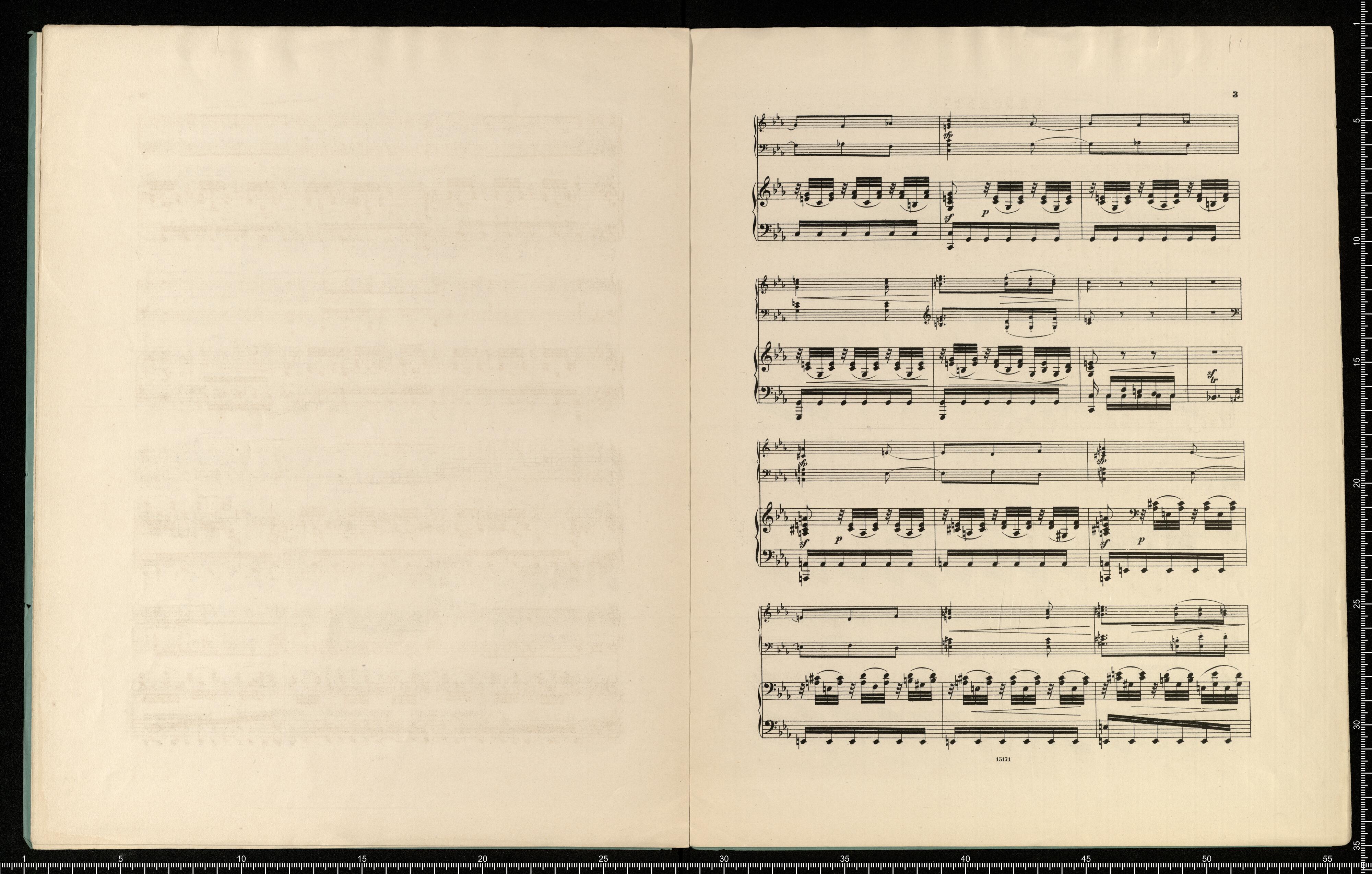 LARGHETTO | aus der SYMPHONIE in B dur | von | ROBERT SCHUMANN. | Für Harmonium und Pianoforte | eingerichtet | von | A. REINHARD. | Eigenthum der Verleger für alle Länder. | Leipzig, Breitkopf & Härtel. | Pr. 2 Mark. | Eingetragen in das Vereins Archiv. | Ent|d Sta. Sall. | 15171