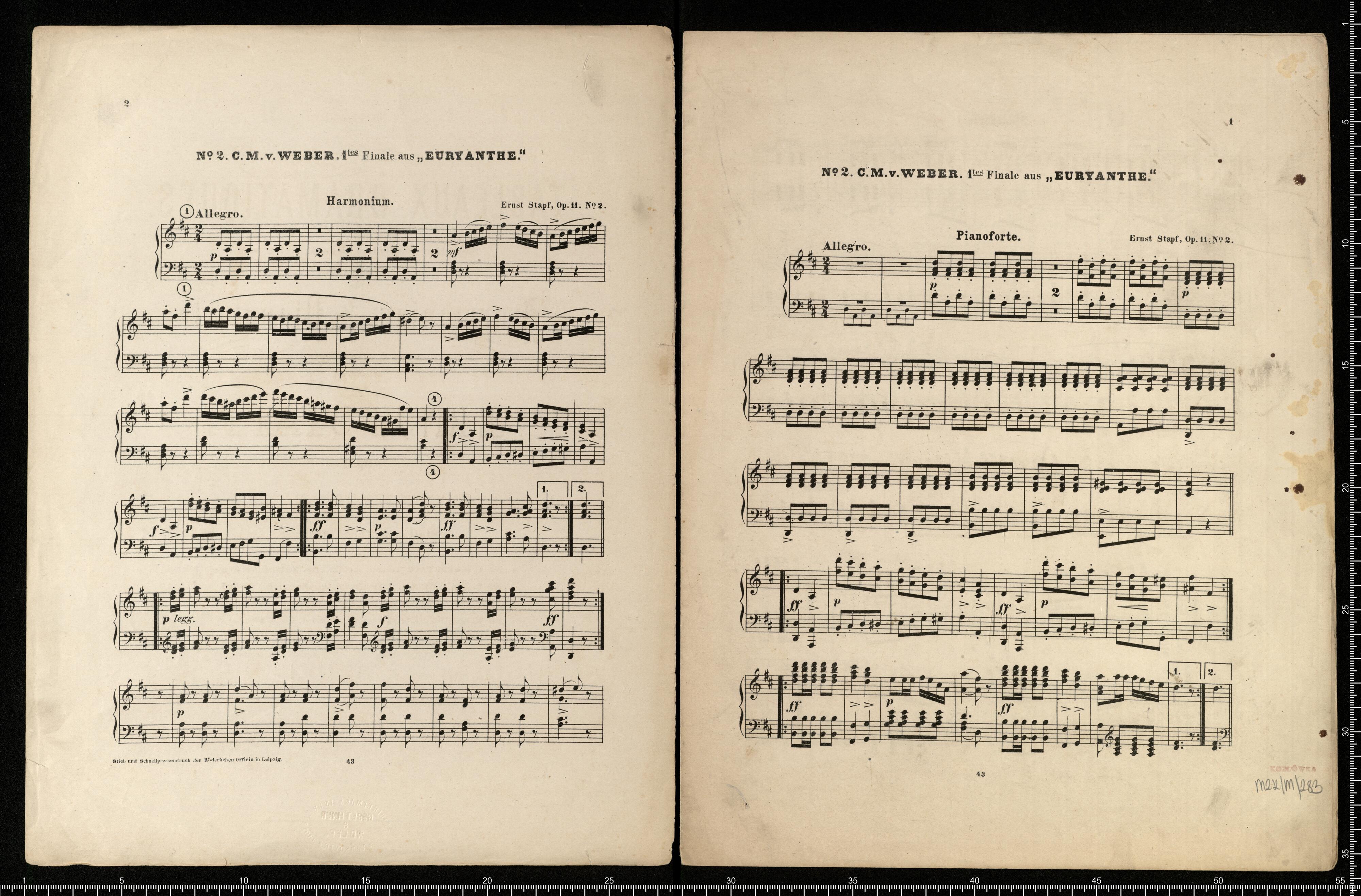 TABLEAUX DRAMATIQUES. | Sammlung beliebter Scnen, Arien etc. | aus Opern; | für | Harmonium & Pianoforte | (oder 2 Pianoforte) } bearbeitet | von | ERNST STAPF. | Op. 11. | Die Arrangements sind Eigenthum des Verlegers. Stuttgart, Thod. Stürmer. [below other works in publisher's offer.] | 42. 43. 51. 52