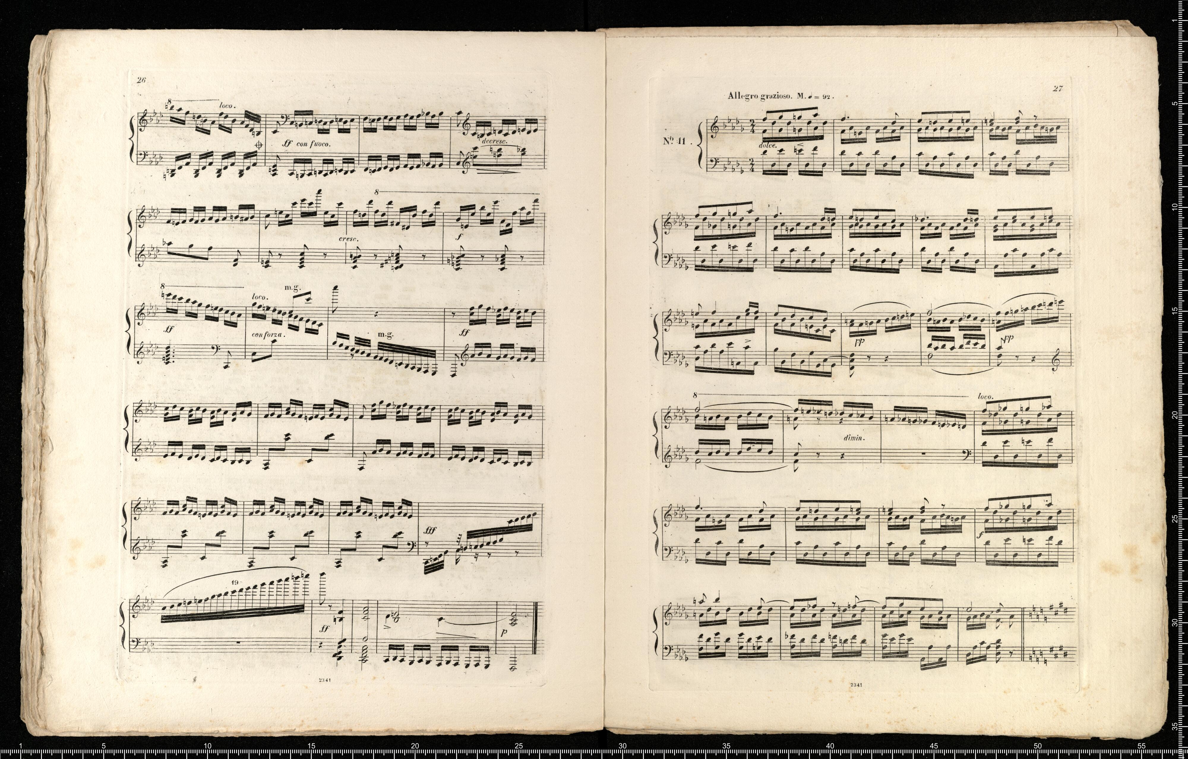 ETUDES | pour le | Piano | en douze Exercices | composés | par | F. LISZT. | Oeuvre I | Travail de la Jeunesse | Liv. I. 16 Gr. Liv. II. 20 Gr. | Leipzig, chez Fr. Hofmeister. | 2340_41