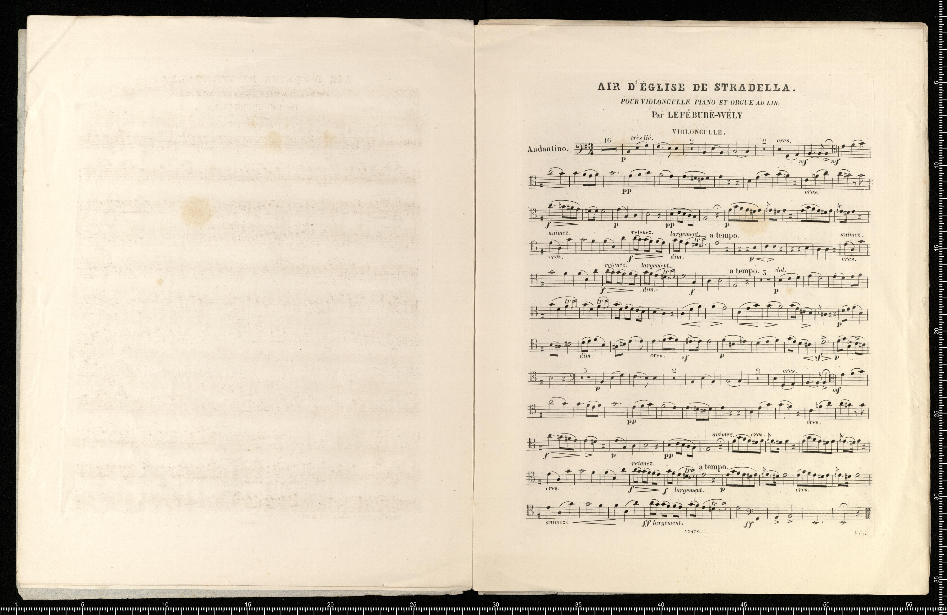 Hommage à son élève | la Princesse Ch. de Beauvau. | Air d'Eglise | du célèbre Chanteur | STRADELLA | 1667 | POUR PIANO et VIOLON SOLO | OU VIOLONCELLE | AVEC ORGUE AD. LIB. | PAR | Lefébure-Wély. | N°.13478. Pr. M 2.- | Proprieté des Editeurs. Enregistré aux Archives de l'Union .| MAYENCE CHEZ LES FILS DE B. SCHOTT. | Bruxelles, Schott frères. 82 Montagne de la Cour. Londres, Schott & C(ie). 159 Regent Street. | Dépôt général de notre fonds de Musique. | LEIPZIG. C.F. LEEDE
