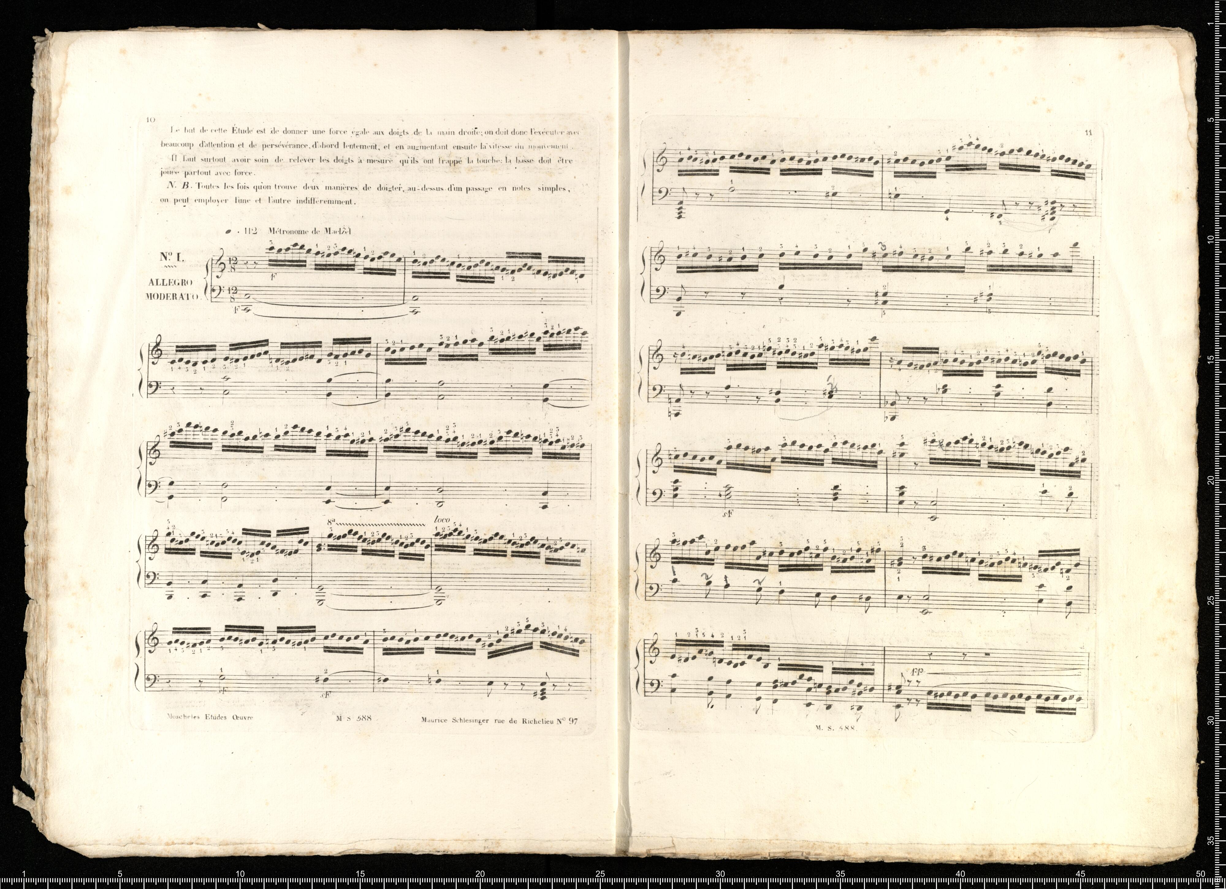 ÉTUDES | pour le | Piano Forte | ou Leçons de Perfectionement destinées aux Elèves avancés, | contenant une suite de 24 Morceaux caractèristiques | dans les differents Tons Majeurs et Mineurs | doigtées et accompagnées de Notes explicatives sur l'intention de l'Auteur, | sur la manière de les étudier et de les exécuter. | Composées et Dediées | à son Maitre & Ami | FRÉDÉRIC DENIS WEBER | Directeur du Conservatoire de Musique de Prague . | PAR | I. MOSCHELES. | 2(me) | Edition | Œuv : 70 . | Prix : 18 (f). | _ Livraison . | Paris, Chez MAURICE SCHLESINGER Rue Richelieu 97 | LEIPZIG Chez KISTNER LONDRES chez CHAPPEL et C(ie) | Prop(é) des Editeurs
