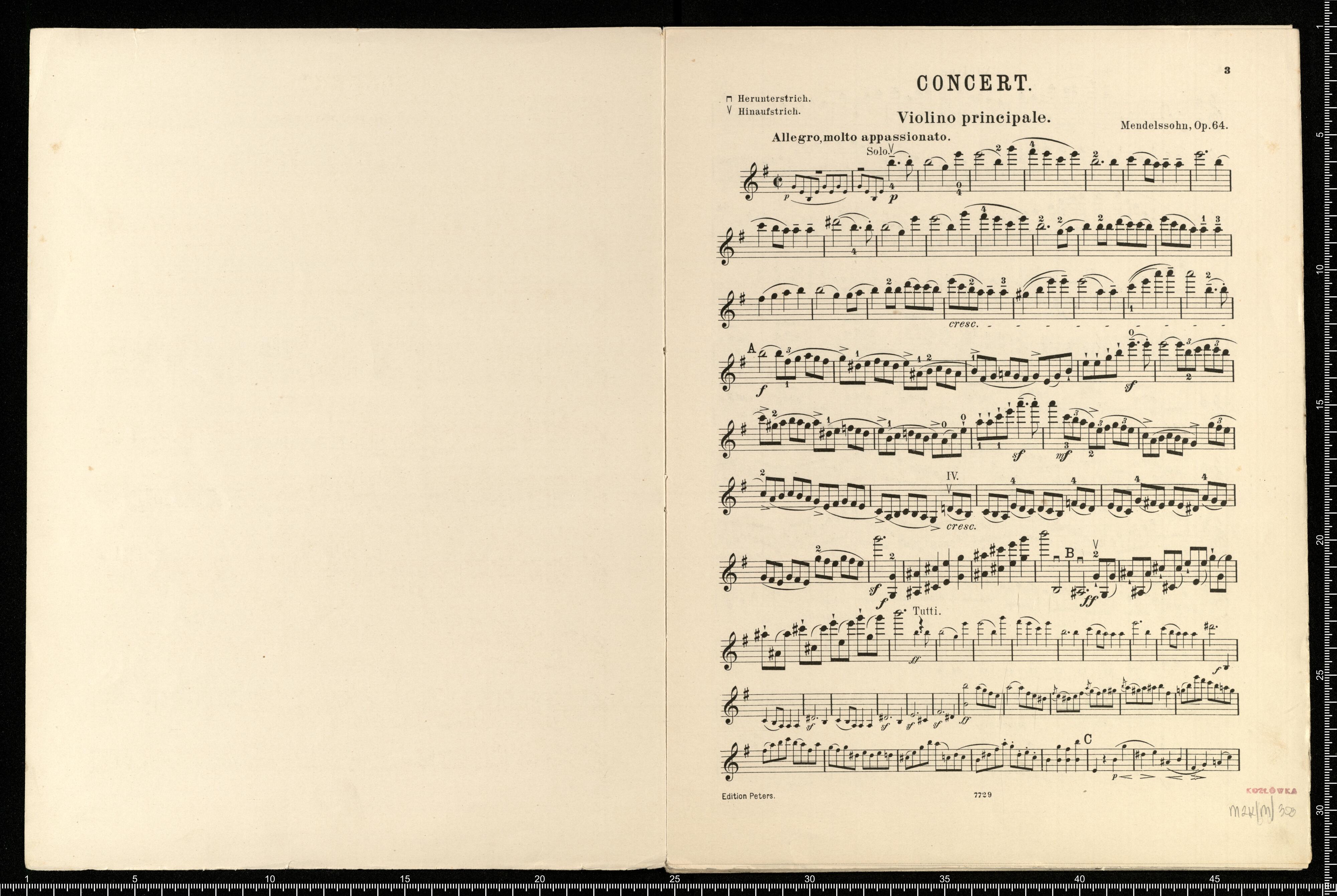 Felix Mendelssohn | Bartholdy's | Sämmtliche Werke. | Concert | für Violine | mit Pianoforte Begleitung | herausgegeben von | JEAN BECKER. | LEIPZIG | C.F. PETERS. | F. Baumgarten, del. Lith. Anst. von C.G. Röder, Leipzig