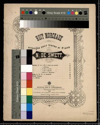 HUIT MORCEAUX | arrangés pour Violon et Piano | par | N. DE SWETT. | [price list] 6. Rubinstein, A. Op. 30 1(re) Barcarolle 60 | [price list] Proprieté de l'editeur. | MOSCOU chez P. JURGENSON, | Comissionnaire de la Chapelle de la Cour, de la Société Impériale Musicale russe | et du Conservatoire à Moscou. | Dépôts: St.-Pôtersbourg chez J. Jurgenson. | Varsovie chez G. Sennewald. | Imprimerie de musique P. Jurgenson à Moscou, Barcarolle vl, pf. 30