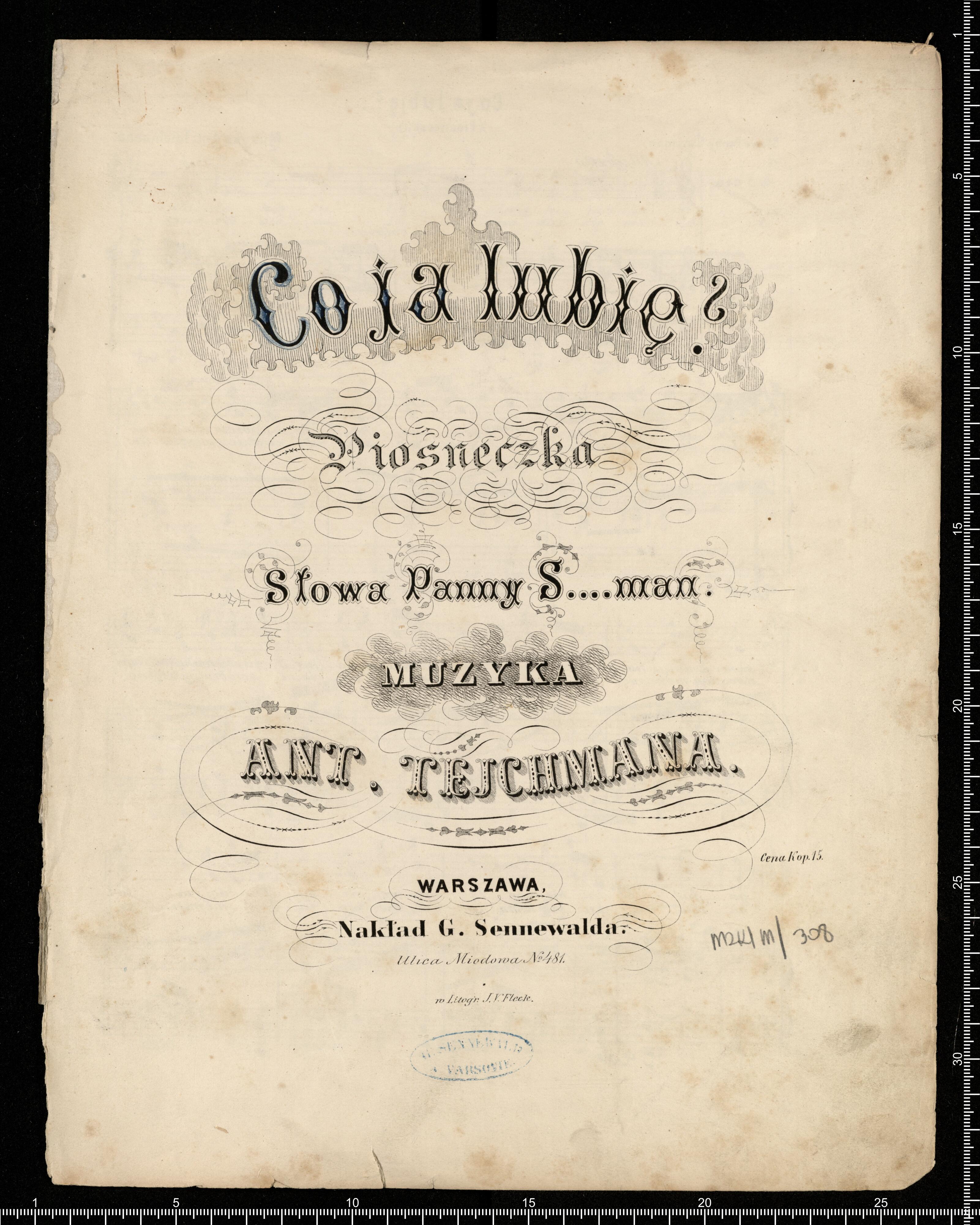 Co ja lubię? | Piosneczka | Słowa Panny S....man. | MUZYKA | ANT. TEICHMANA. | Cena Kop.15 | WARSZAWA. | Nakład G. Sennewalda. | Ulica Miodowa N° 481. | ro Litogr. J.V. Fleck