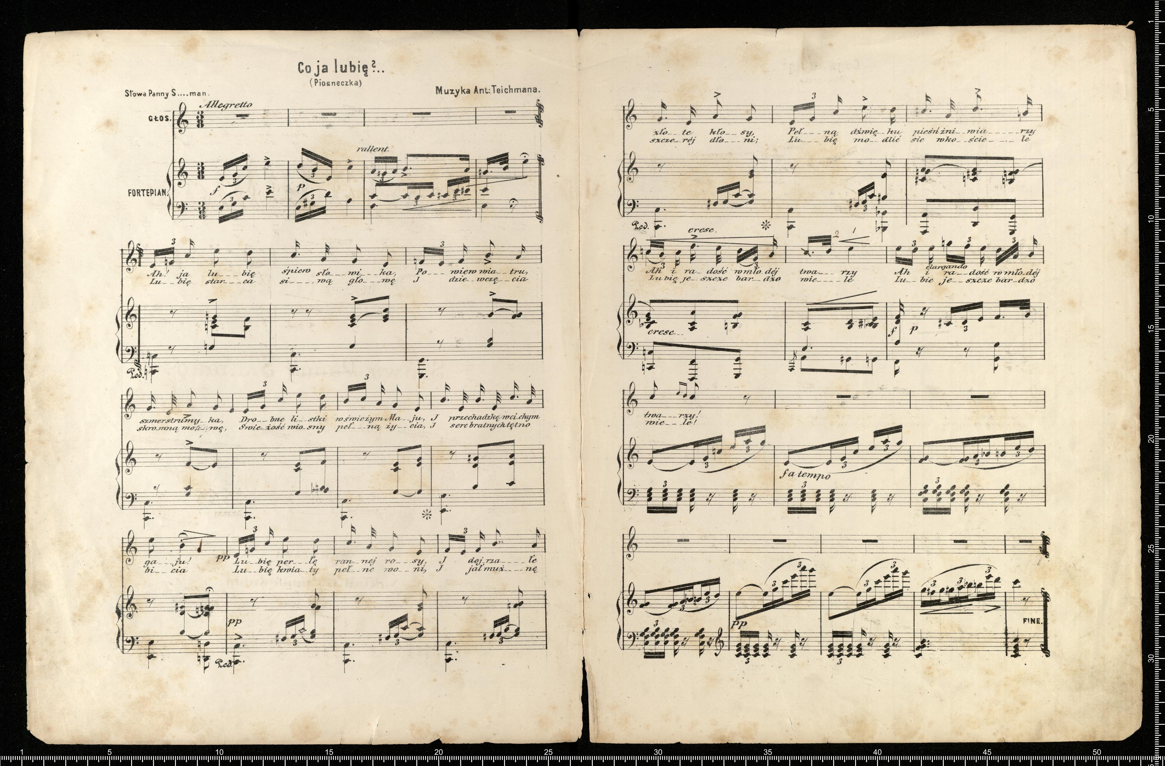Co ja lubię? | Piosneczka | Słowa Panny S....man. | MUZYKA | ANT. TEICHMANA. | Cena Kop.15 | WARSZAWA. | Nakład G. Sennewalda. | Ulica Miodowa N° 481. | ro Litogr. J.V. Fleck
