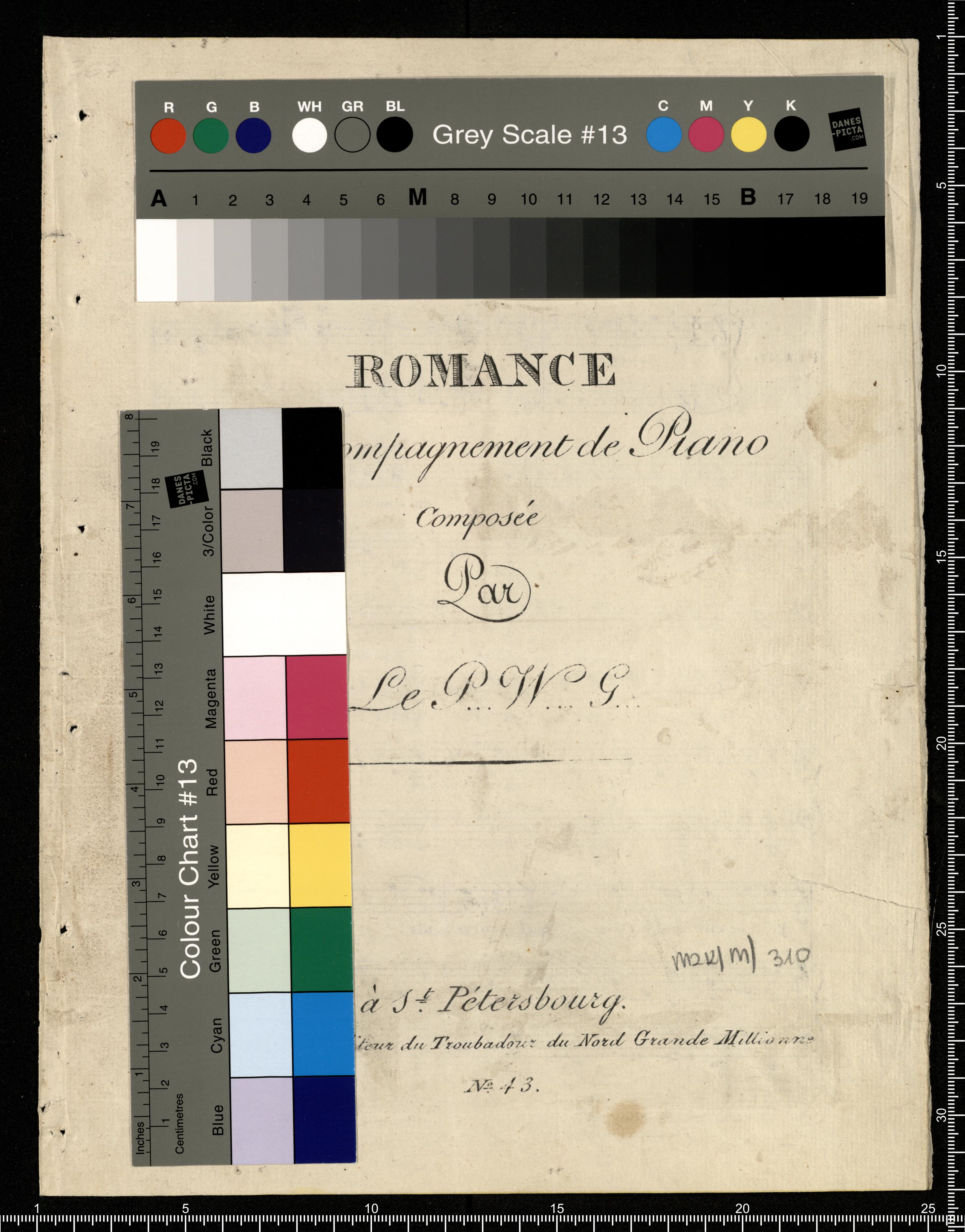 L'absence | ROMANCE | avec accompagnement de Piano | Composée | Par | Le P...W...G... | à S(t). Pétersbourg. | Chez, Dalmas Editeur du Troubadour du Nord Grande Millionare. | N°. 43