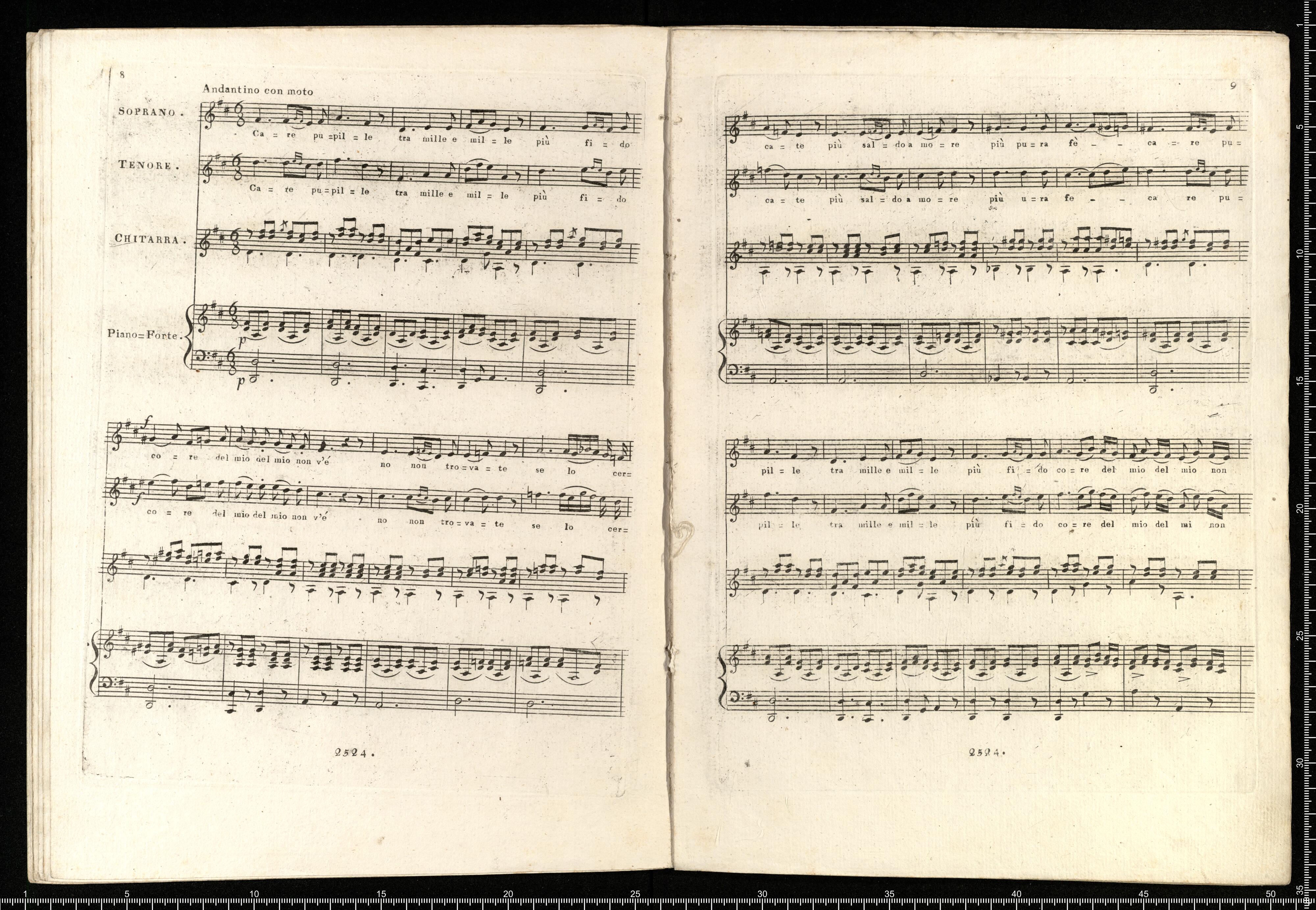 Deux | ROMANCES à 2 voix et 2 DUOS ITALIENS | de | Mr. Blangini | avec accomapgnement du | Pianoforte ou Guitarre | par | MAURO GIULIANI. | à Vienne chez Artaria et Comp. | N°. 2524