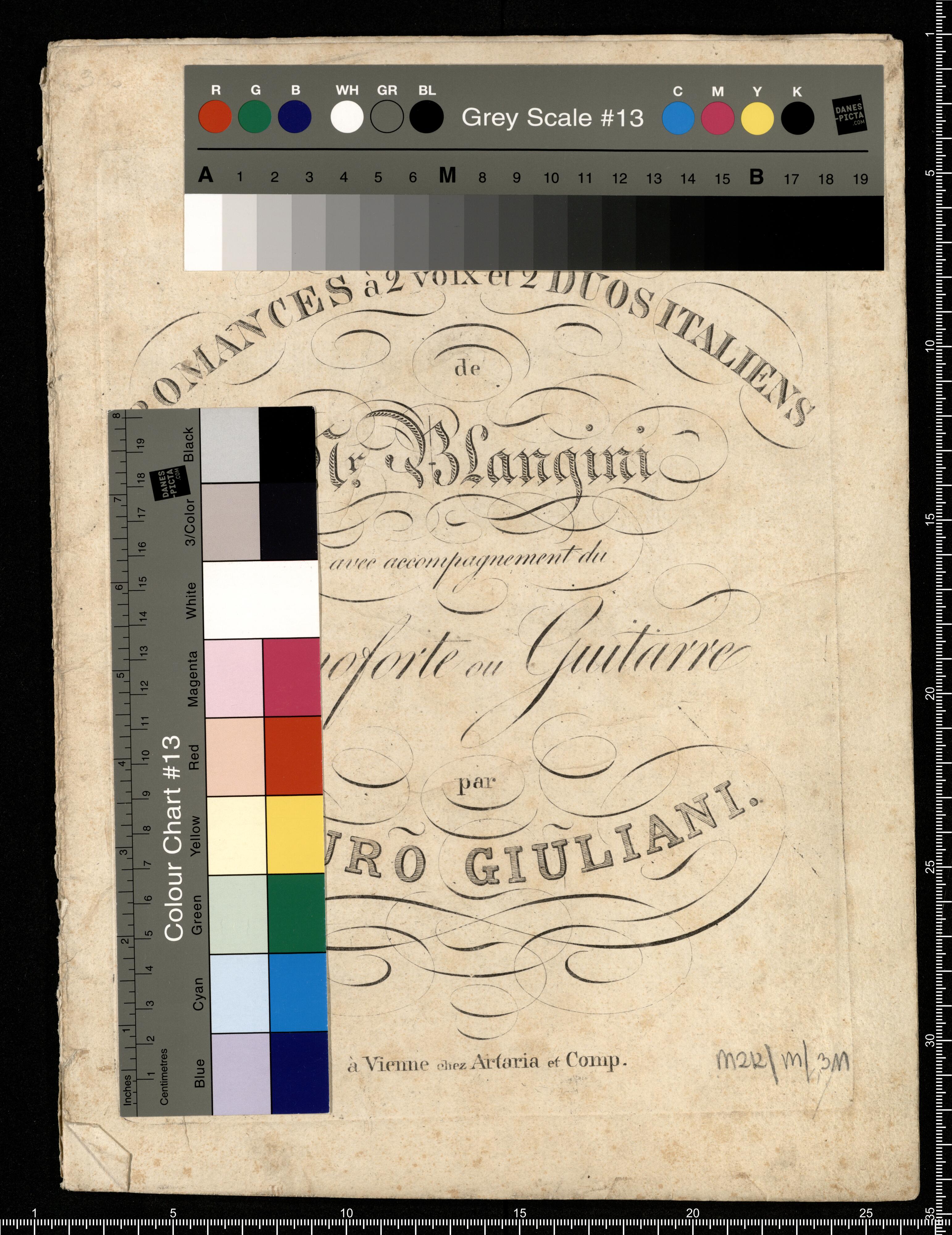 Deux | ROMANCES à 2 voix et 2 DUOS ITALIENS | de | Mr. Blangini | avec accomapgnement du | Pianoforte ou Guitarre | par | MAURO GIULIANI. | à Vienne chez Artaria et Comp. | N°. 2524