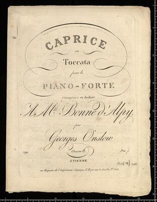 CAPRICE | ou |Toccata | pour le | PIANO-FORTE | composee et dediée | A M|l|l|e Bonne d'Alpy, | par | Georges Onslow | 2199. Oeuvre 6. Prix f | Á VIENNE | au Magasin de l'imprimerie chimique J: R: pr: sur le Graben N|o 612, Caprice ou toccata pf C