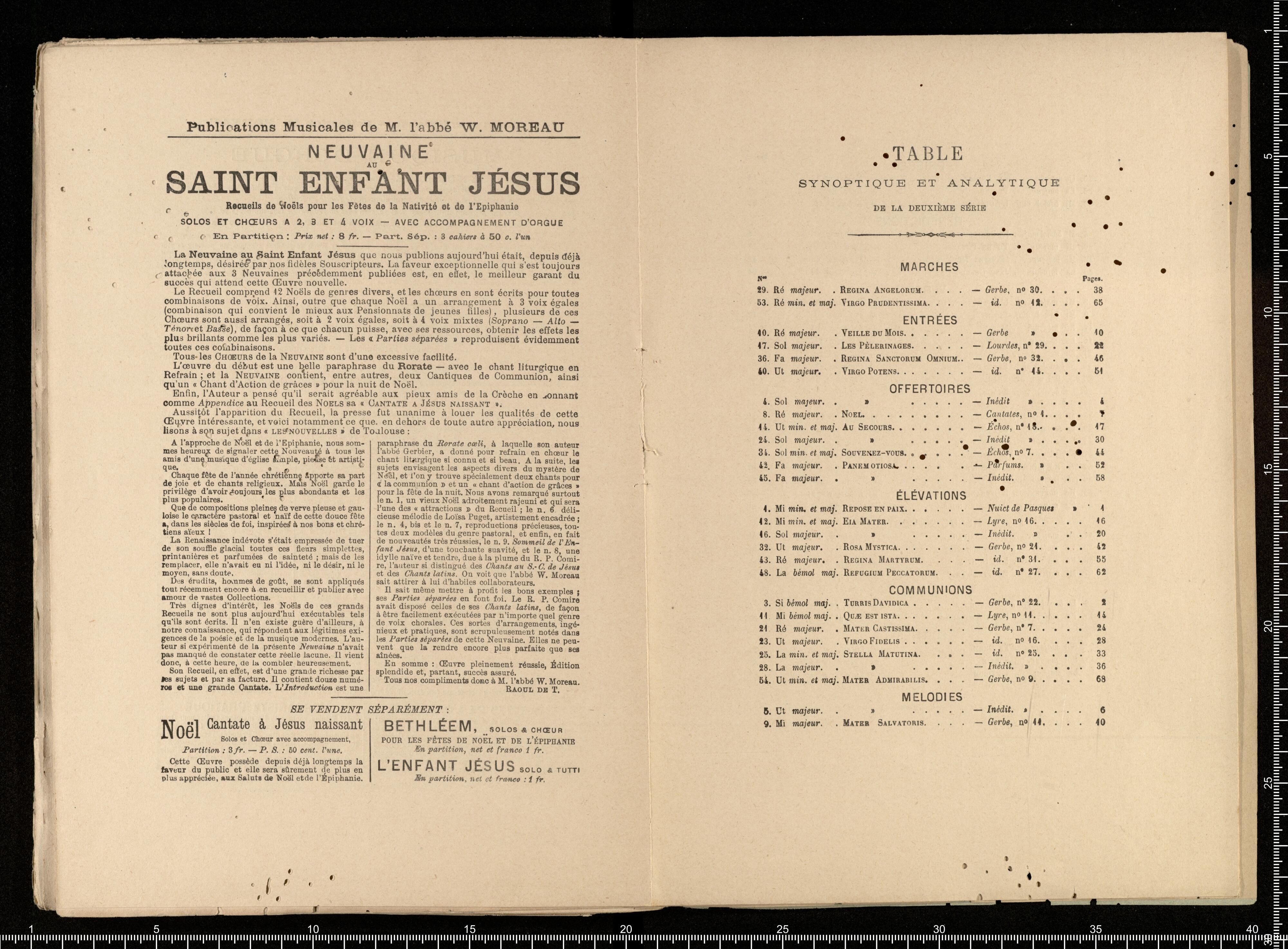 MUSIQUE D'ORGUE | NOUVELLE ÉDITION | MOSAÏQUE | MUSICALE | RECUEIL FACILE | D'Offertoires, Elévations, Communions, Sorties, etc. | POUR | ORGUE OU HARMONIUM | PAR M. L'ABBÉ | W. MOREAU | Membre de l'Académie Pontificale de Ste-Cécile | à Rome | Prix net: 8 francs [left side:] PARIS | HATON, ÉDITEUR | Rue Bonaparte, 35. [right side:] POITIERS | CHEZ L'AUTEUR | Près Sainte-Radégonde
