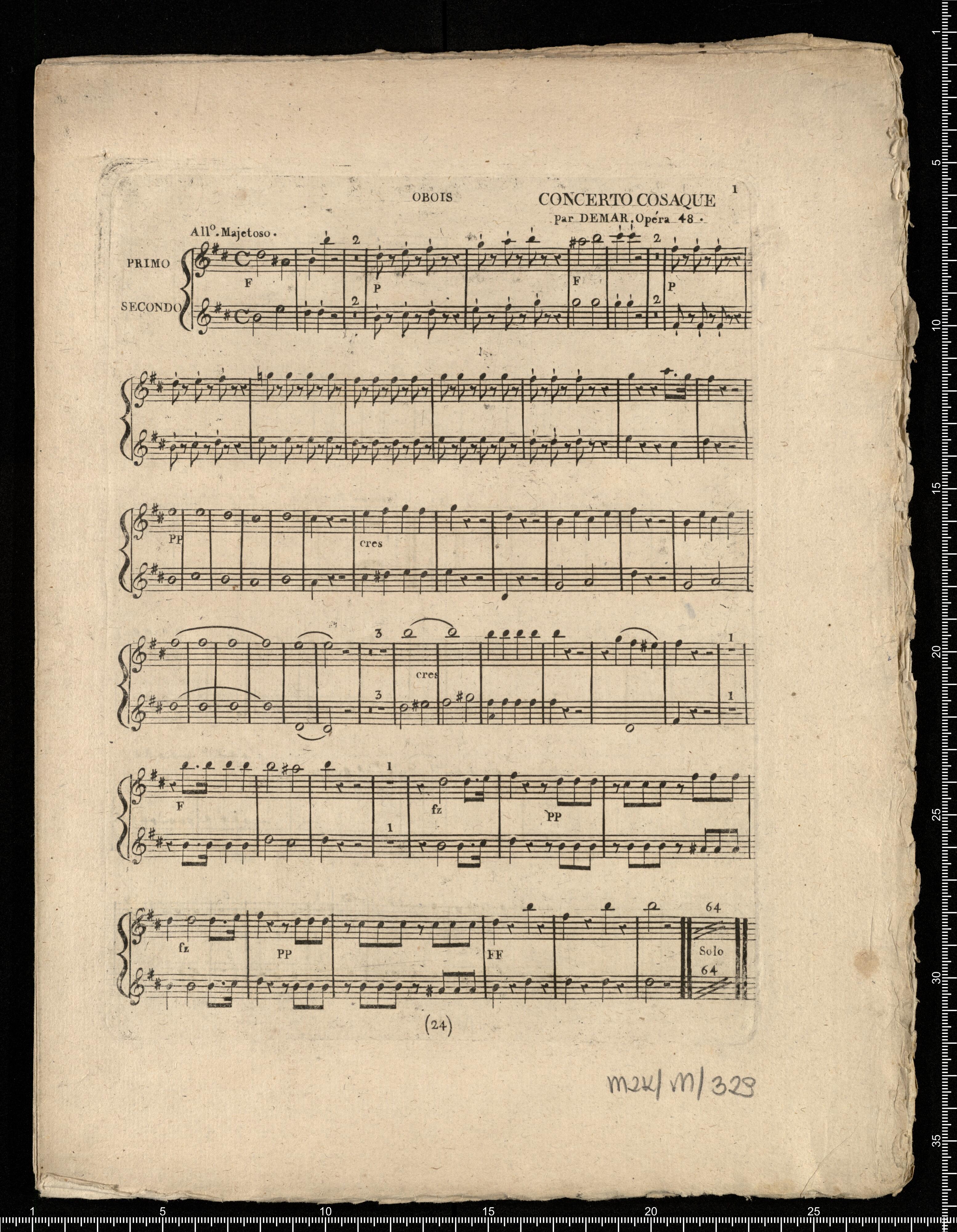 CONCERTO COSAQUE | Pour le Forte-Piano. | Avec Accompagnement | De deux Hautbois, petite Flûte, Cors, Triangle, deux | Violons, Alto, Violoncelle et Contrebasse. | Dédié | à M(elle). Adelaïde Hubert. | PAR SÉBASTIEN DEMAR. | OP : XLVIII. PRIX 9(F) | A PARIS, chez B.Pollet, au Magasin de Musique et d’Instrumena, | Palais du Tribunat, Galerie de la Plâce, N°. 3. vis- à-vis la Rue Fromanteau. | Et Rue de Malte, N°. 340, près le Carrousel. | Proprieté de l’Editeur. Enregistré à la Bibliothéque Impériale. | À ORLÉANS. | Chez Sébastien Demar, | Auteur Editeur, | Et Professeur de Musique. | A WURTZBOURG | En Franconie, | Chez Joseph Demar, | Musicien de la Cour
