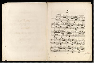 Dem | Frälein Gerta Zeryas | gewidmet. | TONBLÜTHEN | 6 Charakterstücke | für | Piano | von | FRITZ SPINDLER. | 43 Werk | N°. 1126-1151. Eigenthum des Verlegers. à 6 ggr. | [pieces list] | 5. Lilie. | Brannschweig, Henry Litolff's Verlag. | London, I.I. Erver & C° % G Scheurmann. Paris, Brandus. | New-York, Fr. Meyer. Brüssel,, I.H. Meynne, Lilie pf B|b