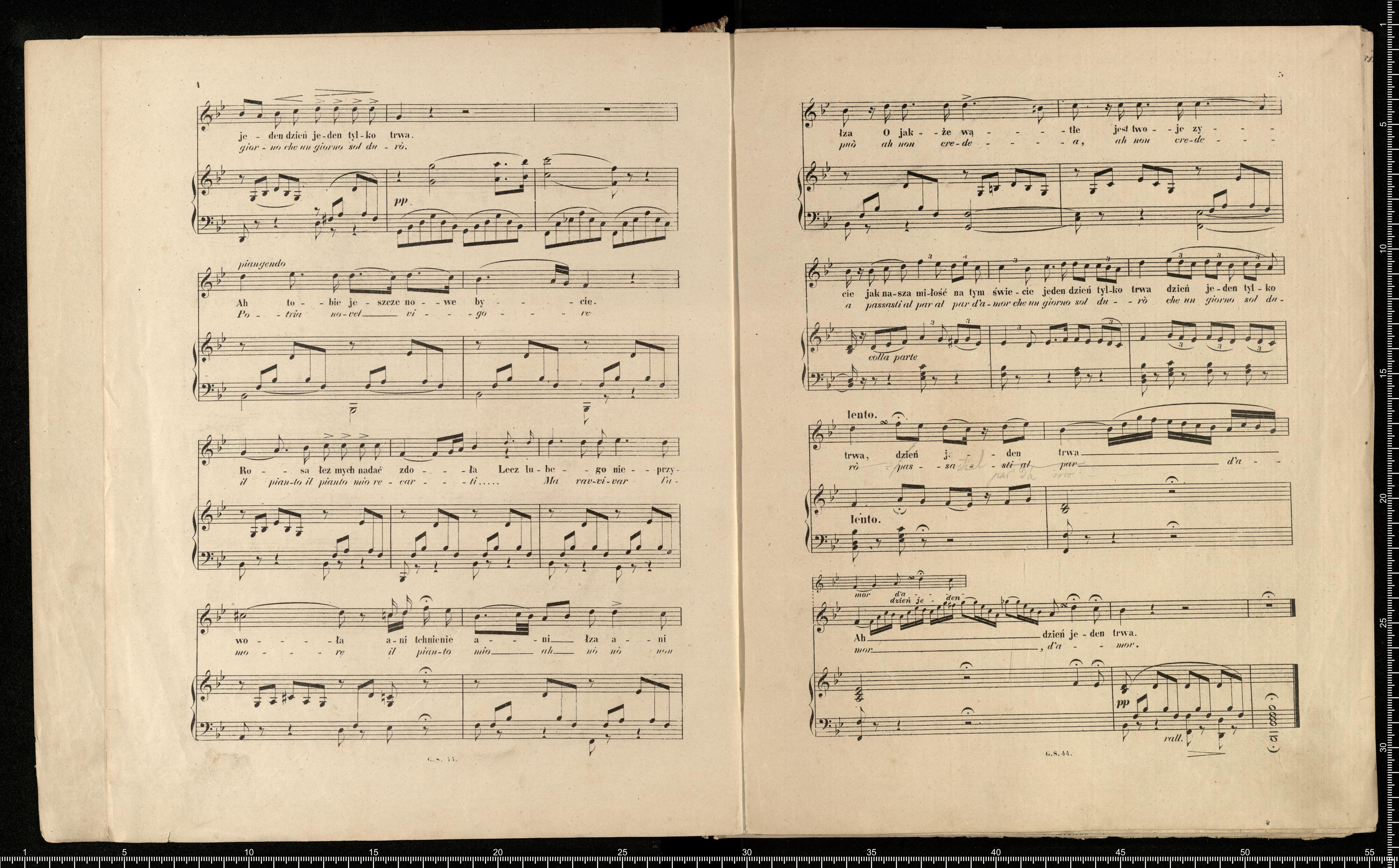 Zbiór ulubionych Spiewów | ułożonych na | Mezzo-Sopran | z łatwym układem Fortepianu | przez | Wilhelma Troschel. | Artystę Opery. | Numera oznaczone znakiem * mogą służyć również na głos Barytonowy. | 2. Bellini, Lunatyczka Ah! non credea mirarti Ah! Jak wątłe jest twe życie 22 1/2. Kop. [price list] | WARSZAWA, NAKŁADEM G. SENNEWALDA. | Ulica Miodowa N°. 4. | Zakład litogr. C.Fr.Rödera w Lipsku