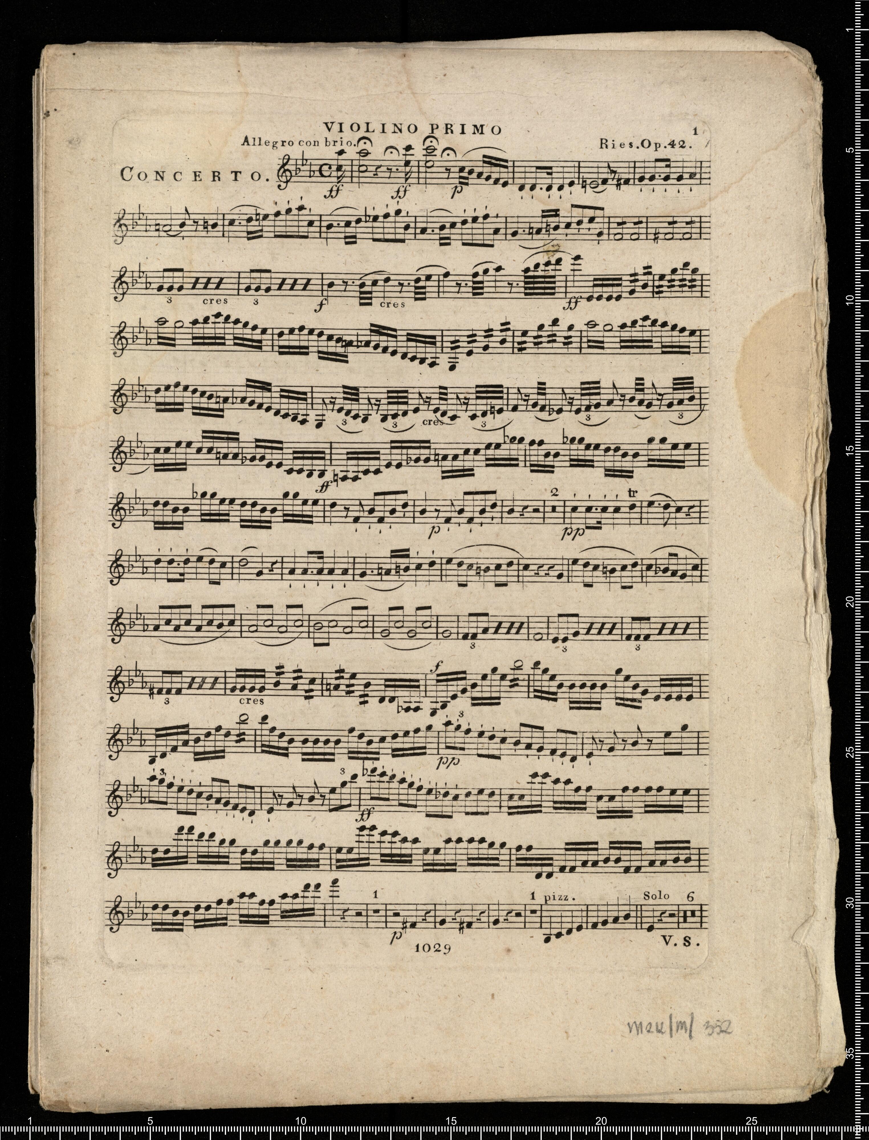 CONCERTO | pour le | Pianoforte | avec accompagnement | de 2 Violons, 2 Clarinettes, 1 Flûte, 2 Bassons, 2 Cors, | 2 Trompettes, Timbales, Alto et Basse | composé et dédié | à Son Altesse Impériale | Rodolphe | Archeduc d'Autriche | par | Ferd. Ries. | Oe. 42. Pr. 3 R. | À LEIPZIG | chez A. Kühnel, | Bureau de Musique