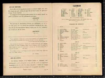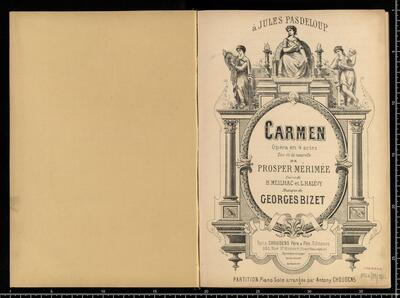 à JULES PASDELOUP | CARMEN | Opéra en 4 actes | Ture de la nouvelle | DE | PROSPER MÉRIMÉE | Poéme de | H. MEILHAC et L. HALÉVY. | Musique de | GEORGES BIZET | Paris, CHOUDENS Père & Fils, Editeurs, | 265, Rue S|t Honoré, (Près l'Assomption) | Propriété pour tous pays. | Droits réservés | Imp. Fouquet, Paris. | PARTITION, Piano Solo arrangée par Antony CHOUDENS, Carmen pf Arr