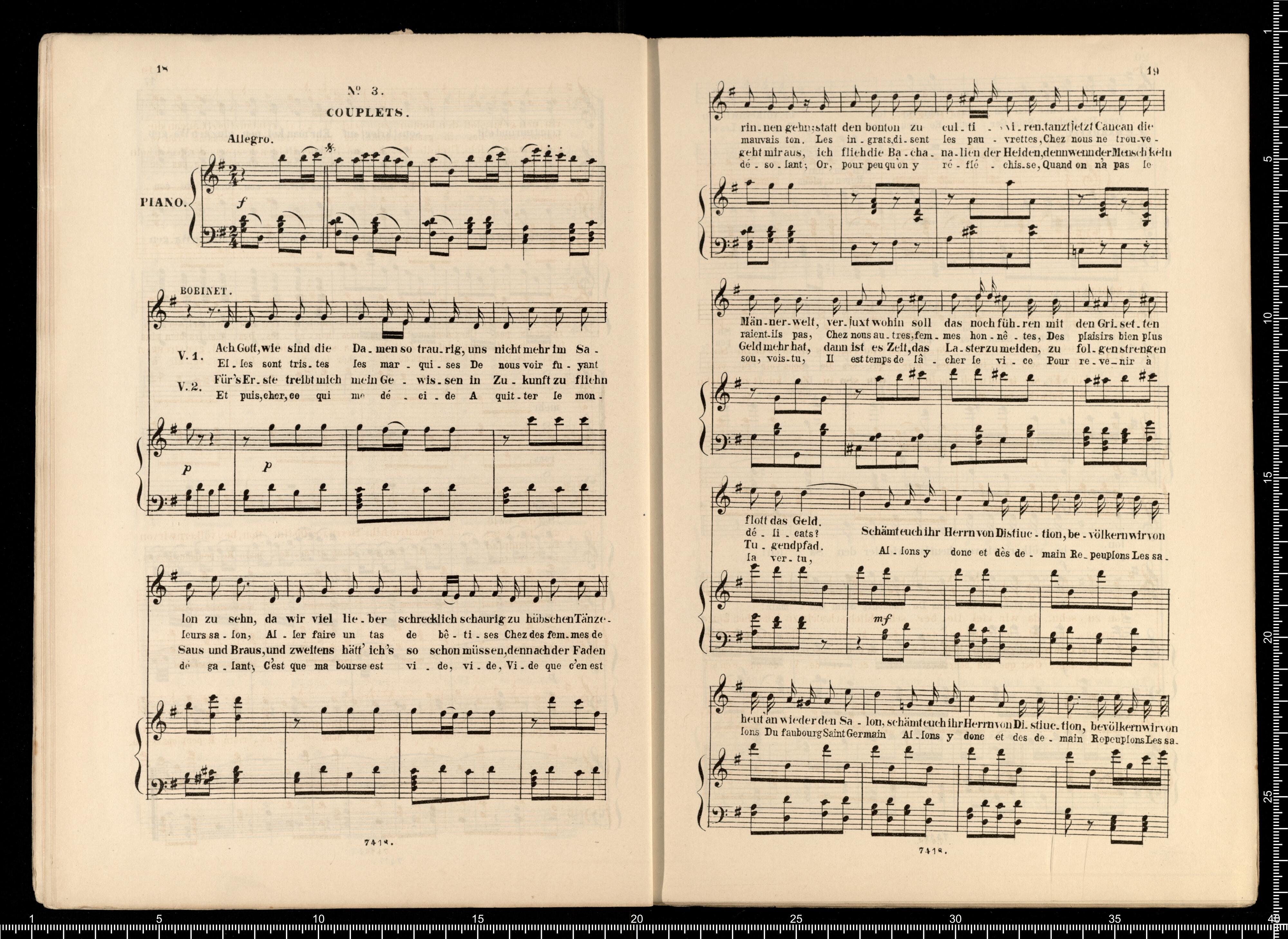 Biblithek | moderner Opern | im vollständigen Auszügen | für Gesang | und Pianoforte. | Offenbach, Pariser Leben. | ED.BOTE&G.BOCK. | Berlin | und Posen. | Lith. Anst. v. C.G.Röder,Leipzig