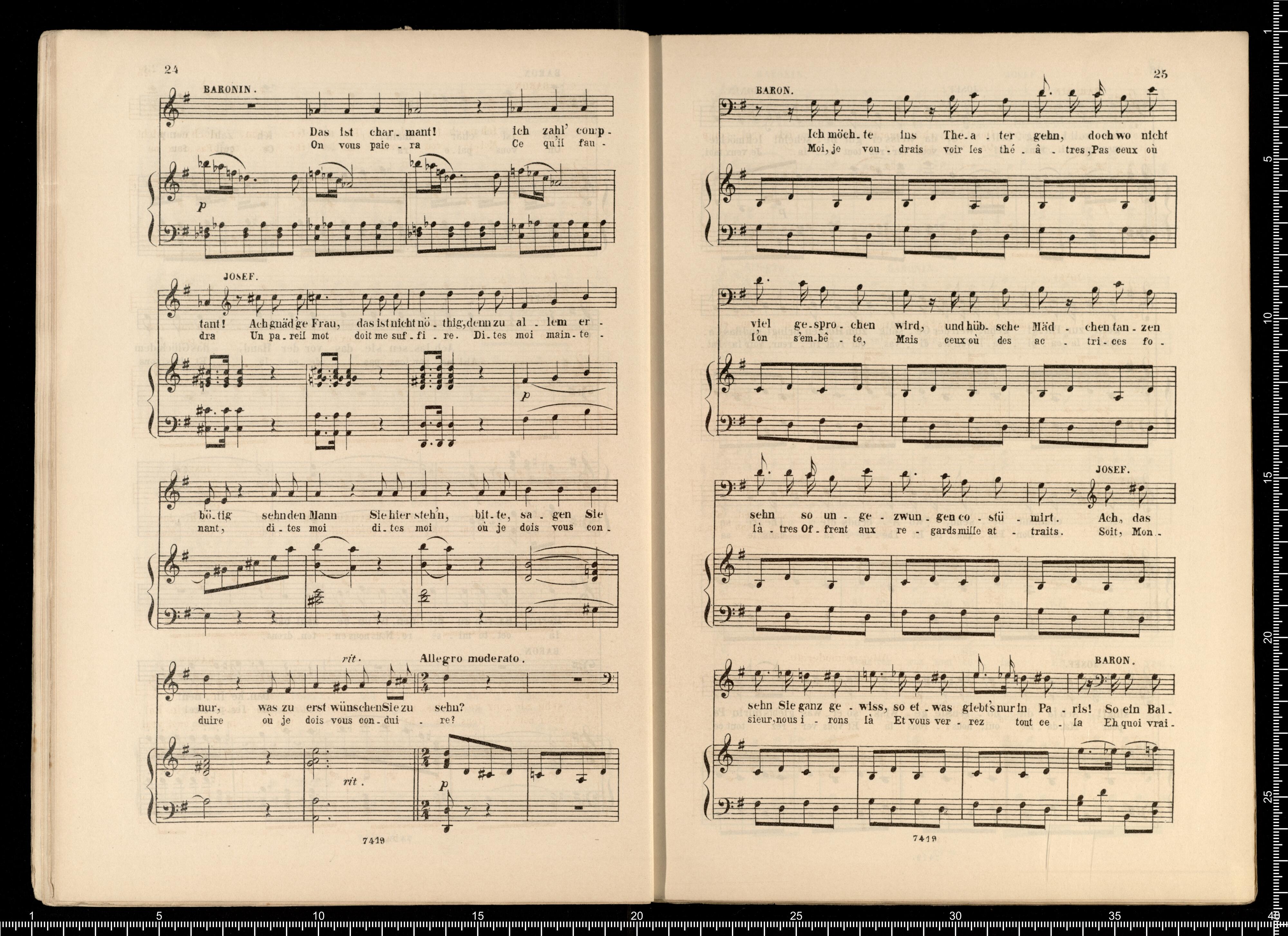 Biblithek | moderner Opern | im vollständigen Auszügen | für Gesang | und Pianoforte. | Offenbach, Pariser Leben. | ED.BOTE&G.BOCK. | Berlin | und Posen. | Lith. Anst. v. C.G.Röder,Leipzig