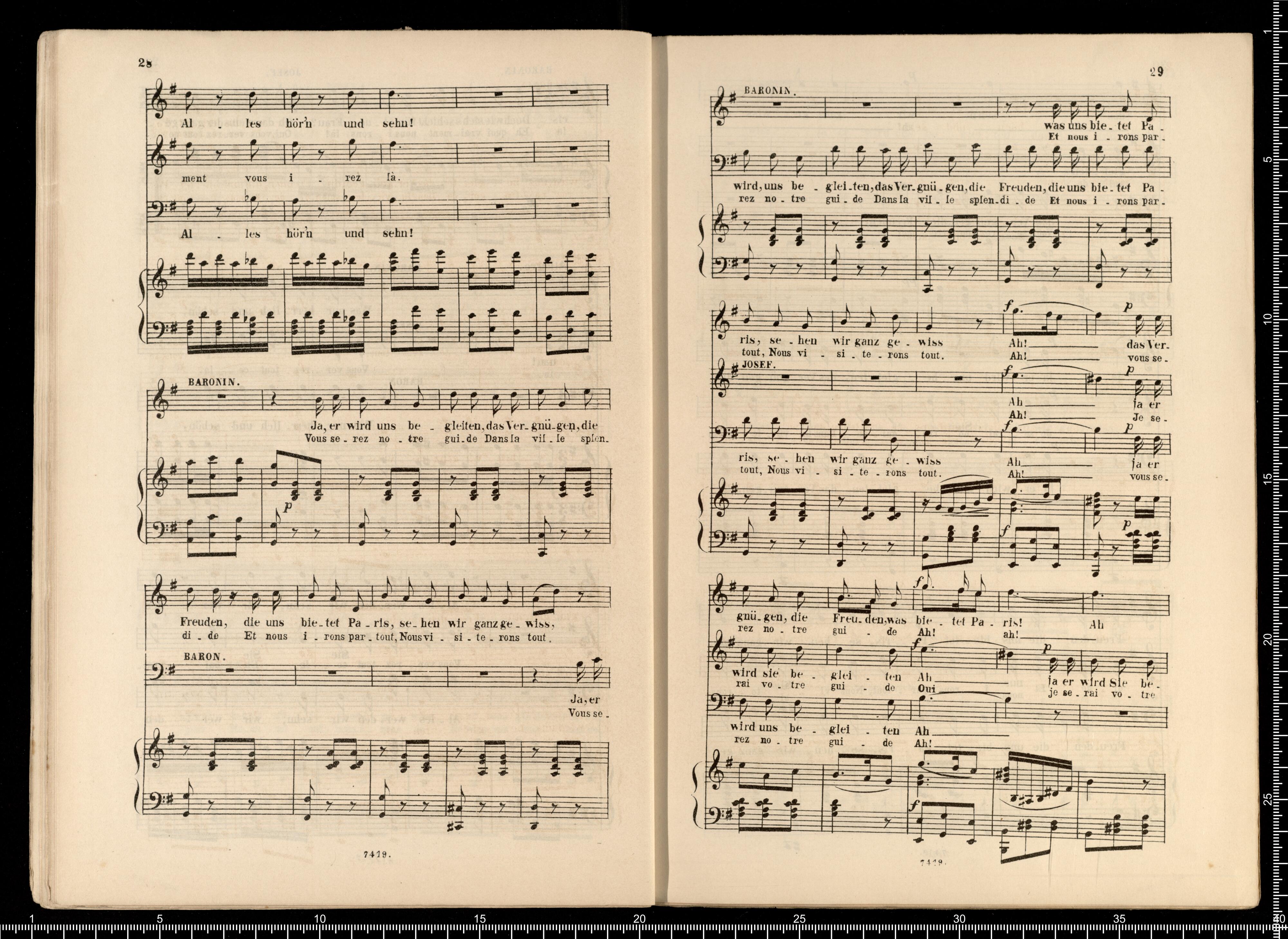 Biblithek | moderner Opern | im vollständigen Auszügen | für Gesang | und Pianoforte. | Offenbach, Pariser Leben. | ED.BOTE&G.BOCK. | Berlin | und Posen. | Lith. Anst. v. C.G.Röder,Leipzig