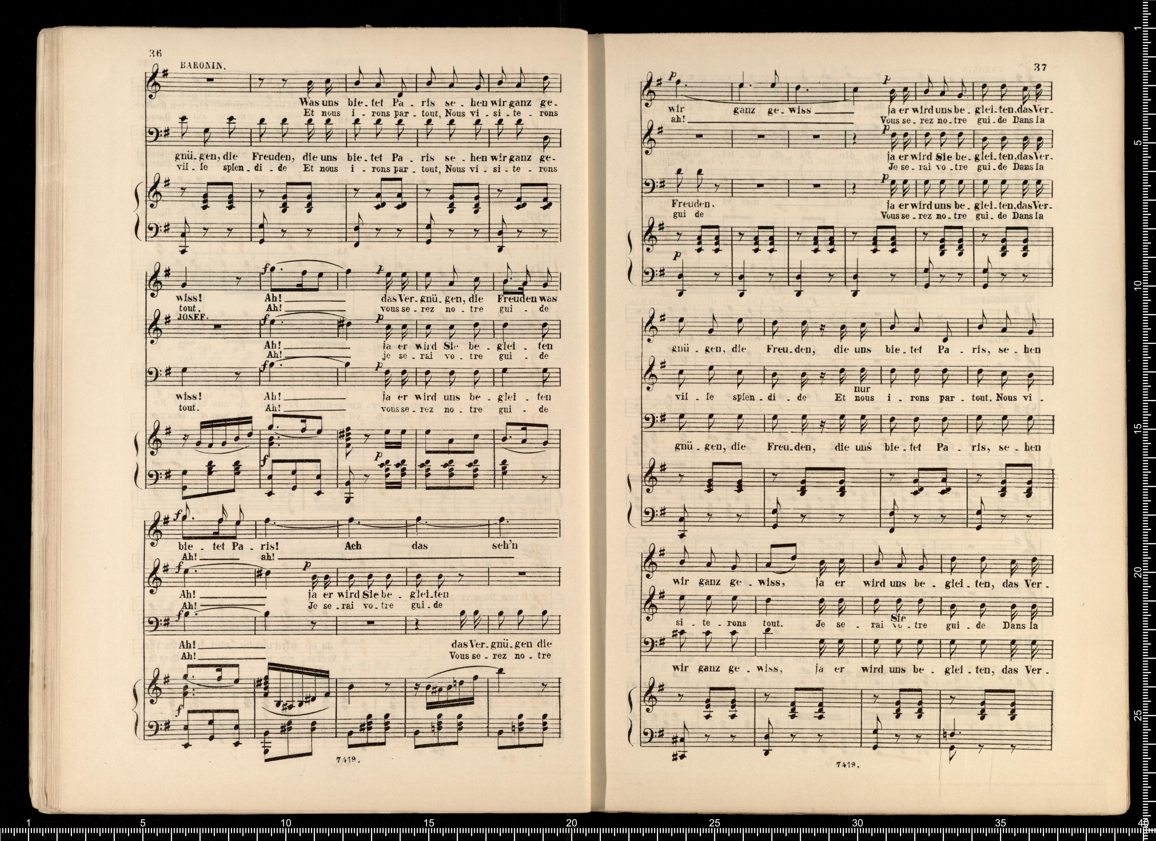 Biblithek | moderner Opern | im vollständigen Auszügen | für Gesang | und Pianoforte. | Offenbach, Pariser Leben. | ED.BOTE&G.BOCK. | Berlin | und Posen. | Lith. Anst. v. C.G.Röder,Leipzig
