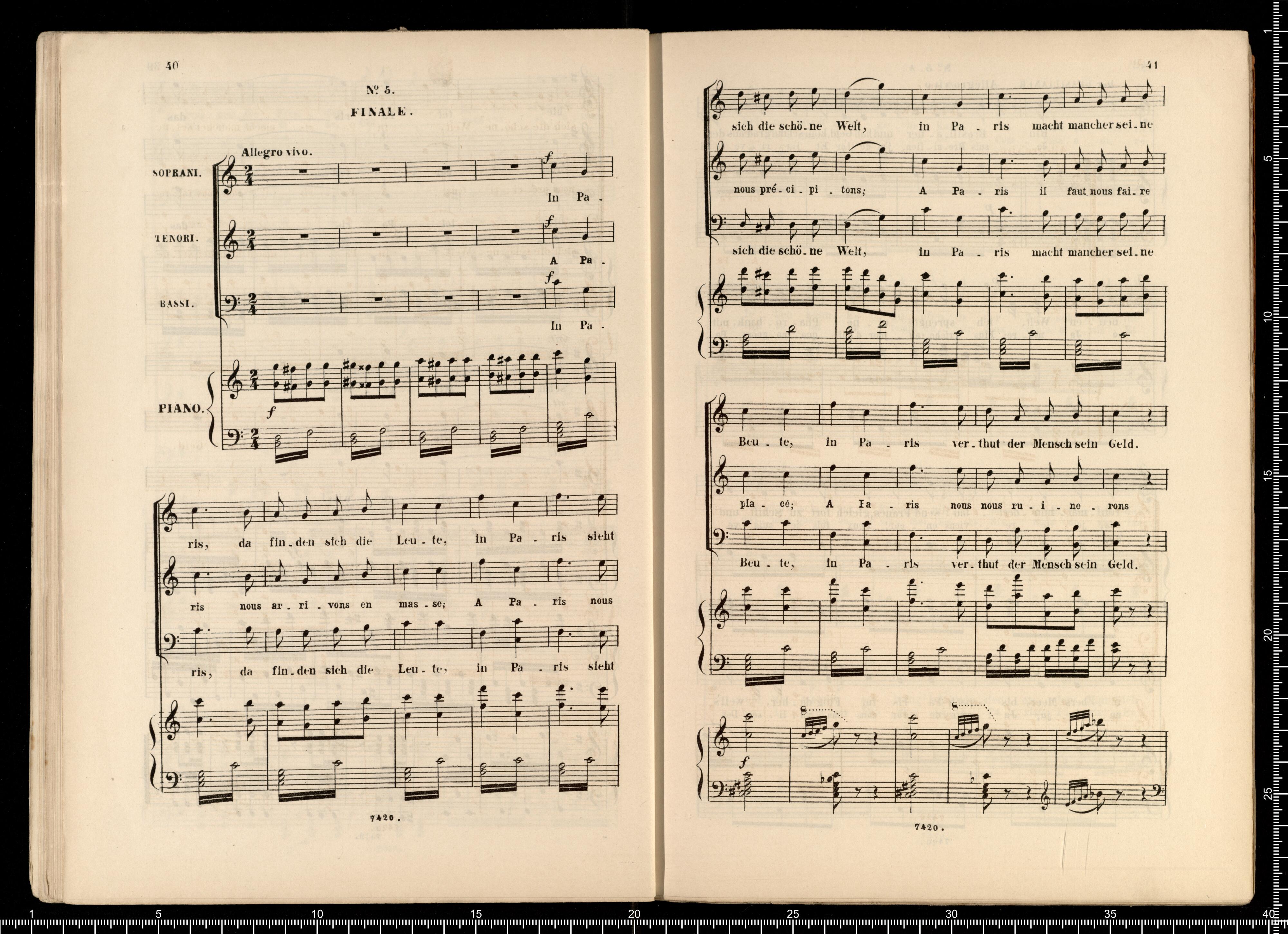 Biblithek | moderner Opern | im vollständigen Auszügen | für Gesang | und Pianoforte. | Offenbach, Pariser Leben. | ED.BOTE&G.BOCK. | Berlin | und Posen. | Lith. Anst. v. C.G.Röder,Leipzig