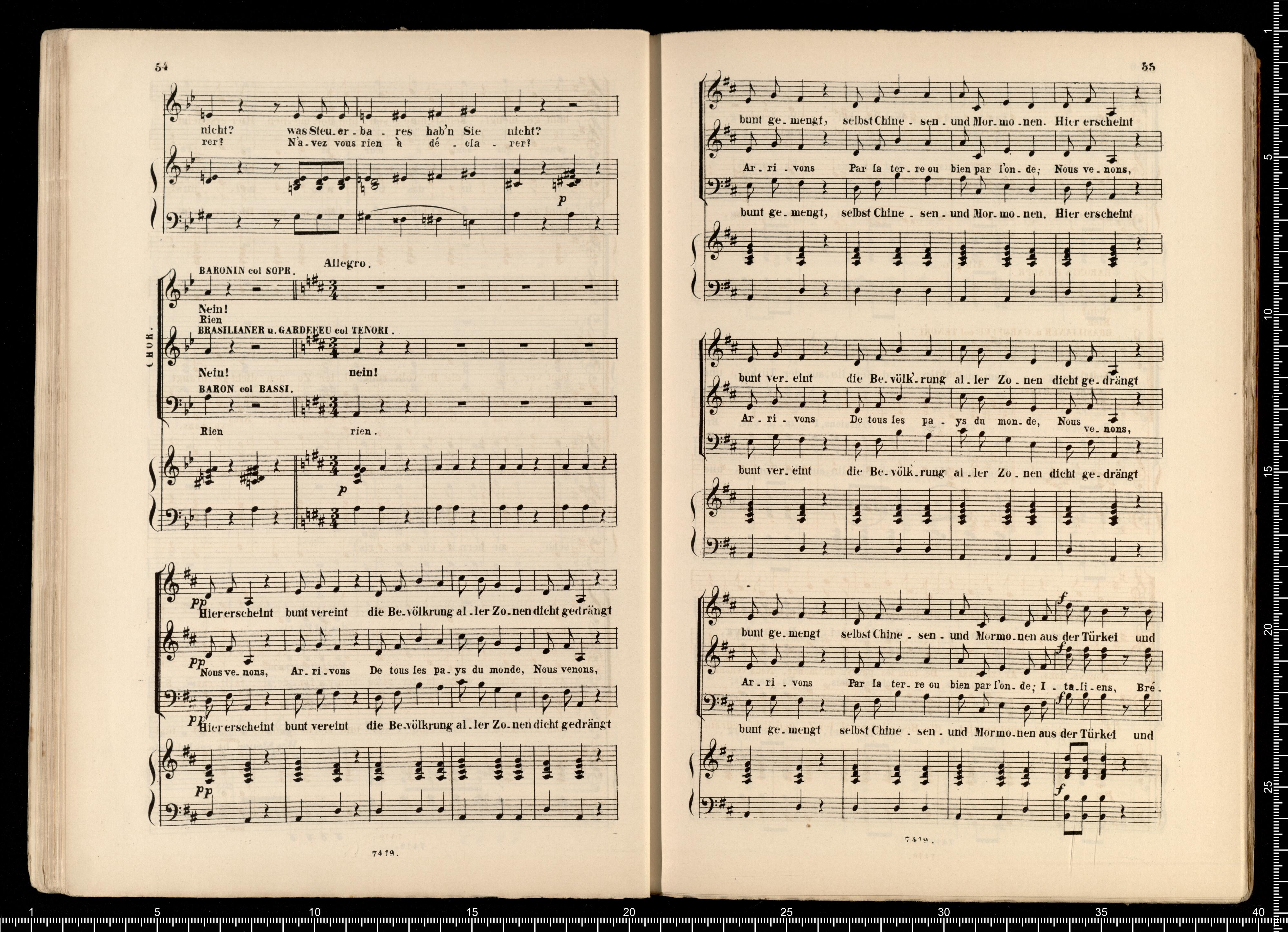 Biblithek | moderner Opern | im vollständigen Auszügen | für Gesang | und Pianoforte. | Offenbach, Pariser Leben. | ED.BOTE&G.BOCK. | Berlin | und Posen. | Lith. Anst. v. C.G.Röder,Leipzig