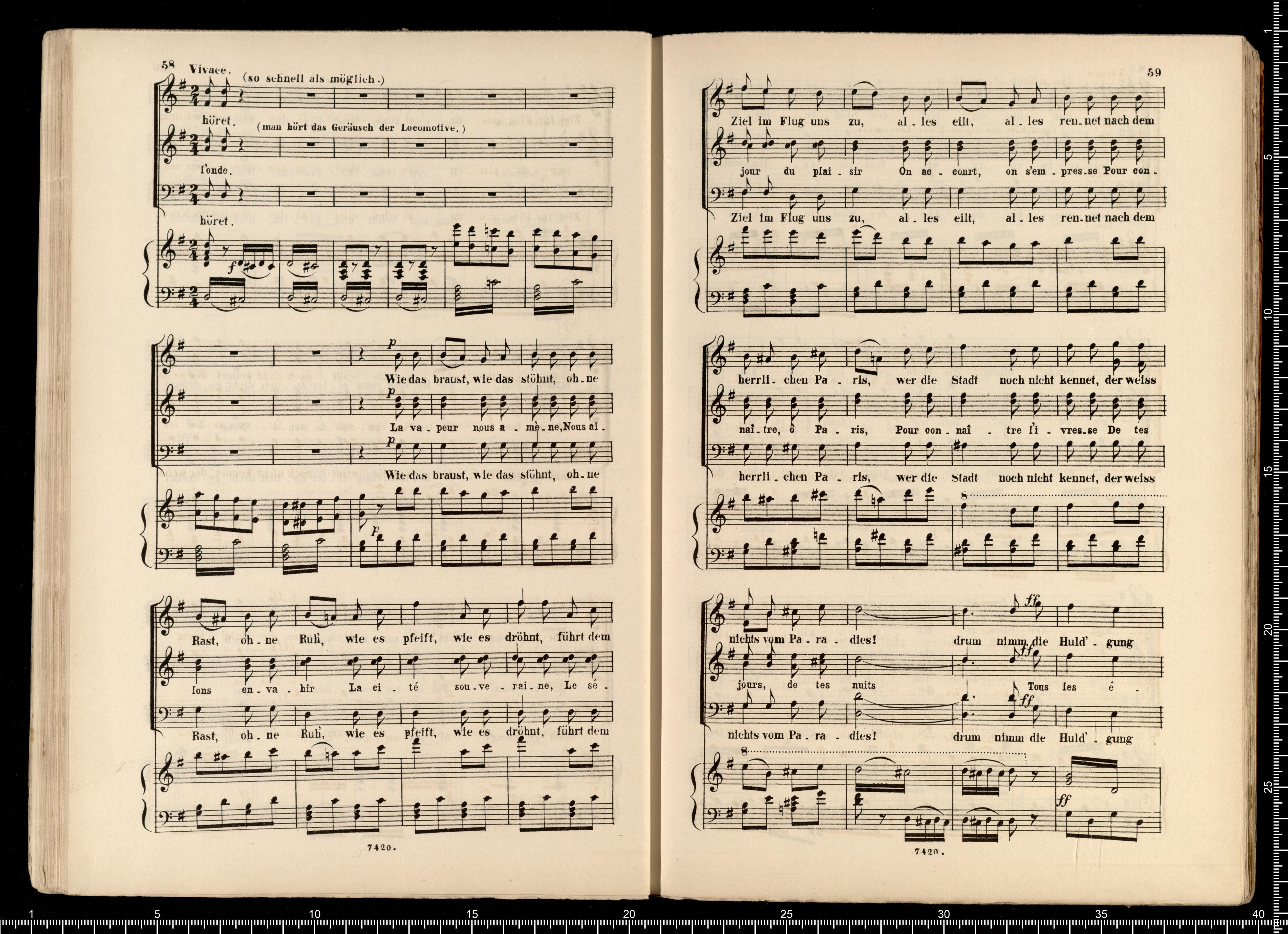 Biblithek | moderner Opern | im vollständigen Auszügen | für Gesang | und Pianoforte. | Offenbach, Pariser Leben. | ED.BOTE&G.BOCK. | Berlin | und Posen. | Lith. Anst. v. C.G.Röder,Leipzig