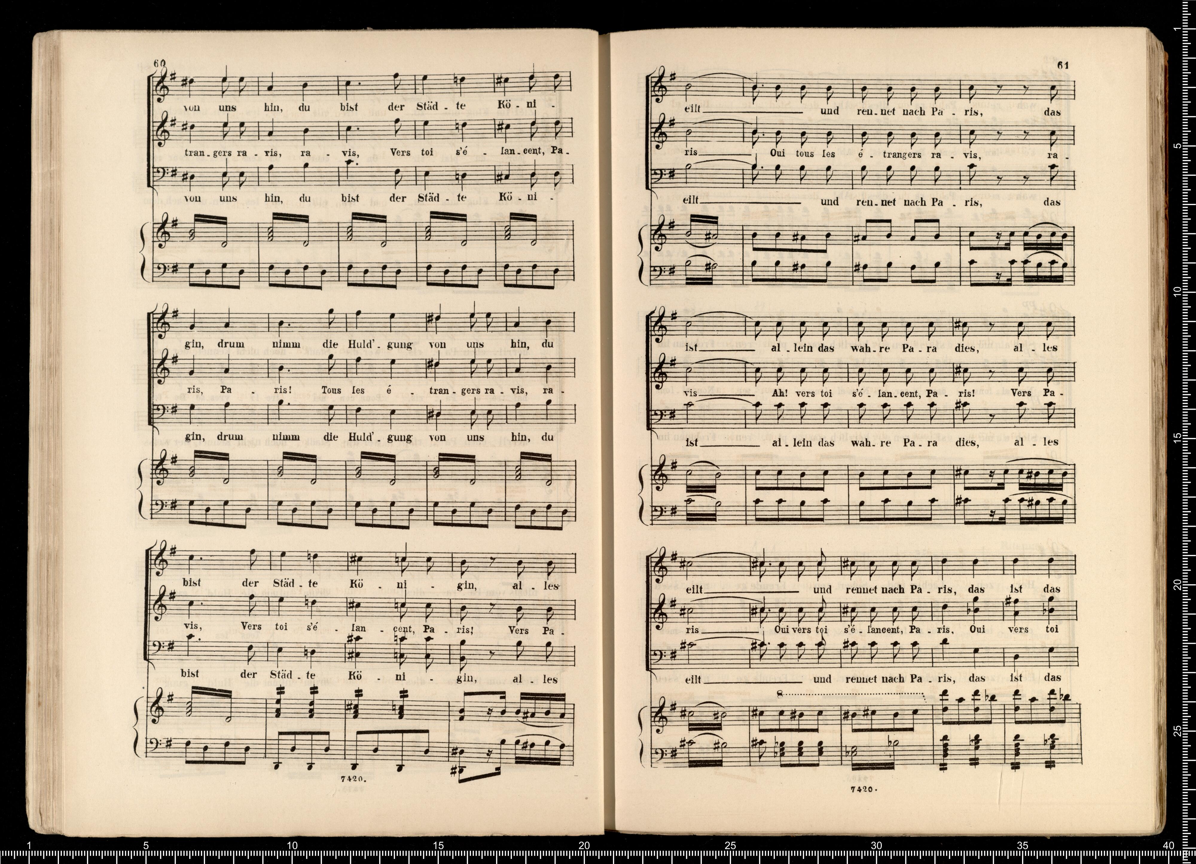 Biblithek | moderner Opern | im vollständigen Auszügen | für Gesang | und Pianoforte. | Offenbach, Pariser Leben. | ED.BOTE&G.BOCK. | Berlin | und Posen. | Lith. Anst. v. C.G.Röder,Leipzig