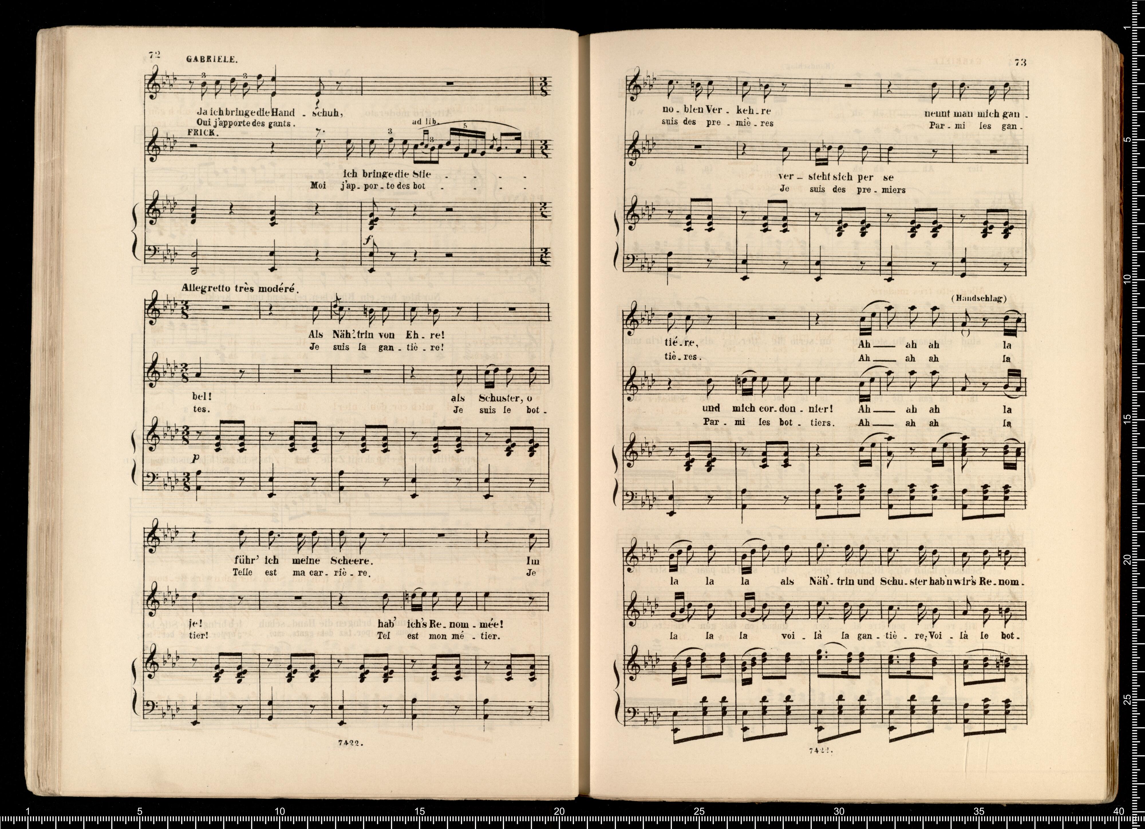 Biblithek | moderner Opern | im vollständigen Auszügen | für Gesang | und Pianoforte. | Offenbach, Pariser Leben. | ED.BOTE&G.BOCK. | Berlin | und Posen. | Lith. Anst. v. C.G.Röder,Leipzig