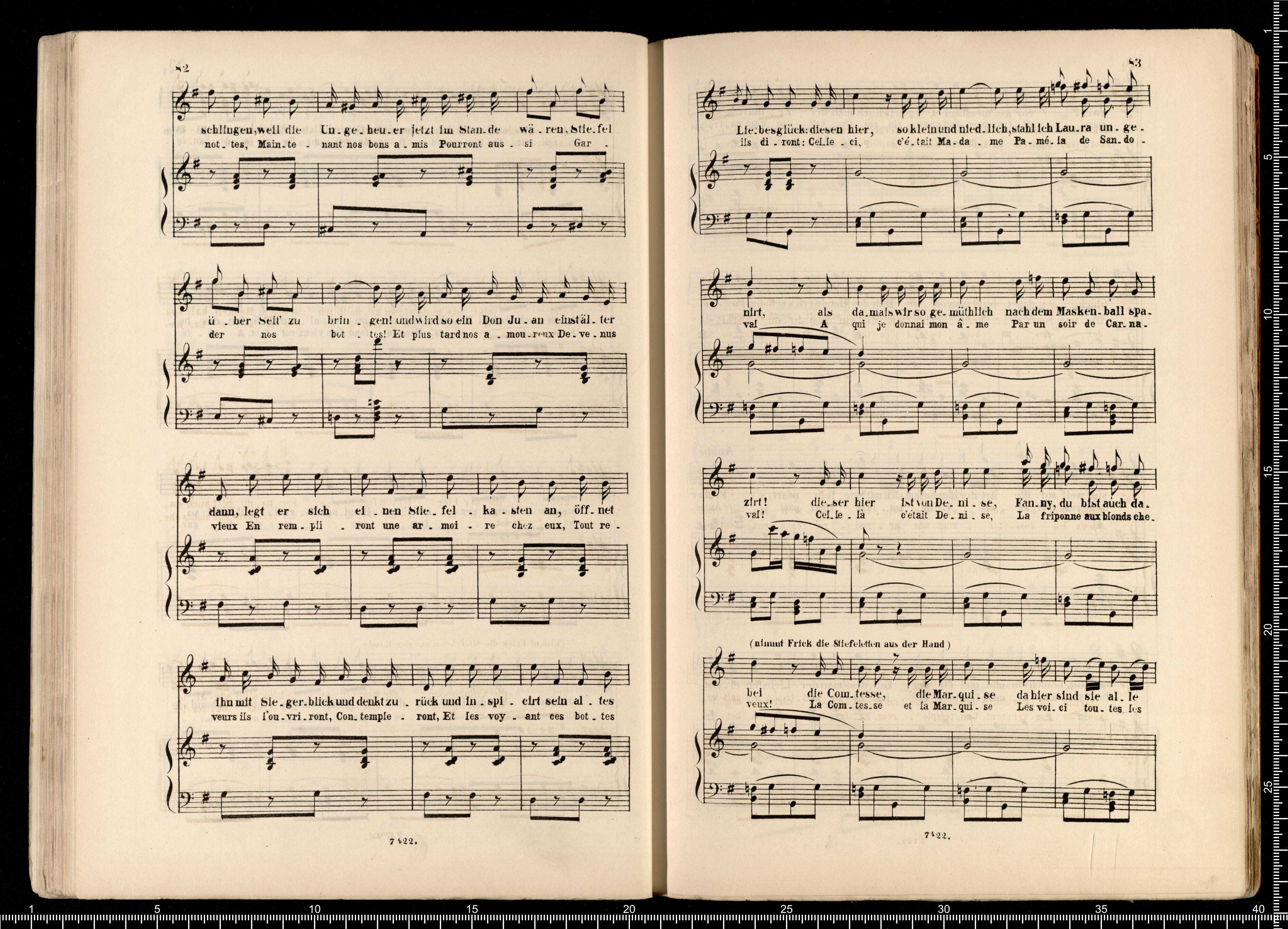 Biblithek | moderner Opern | im vollständigen Auszügen | für Gesang | und Pianoforte. | Offenbach, Pariser Leben. | ED.BOTE&G.BOCK. | Berlin | und Posen. | Lith. Anst. v. C.G.Röder,Leipzig