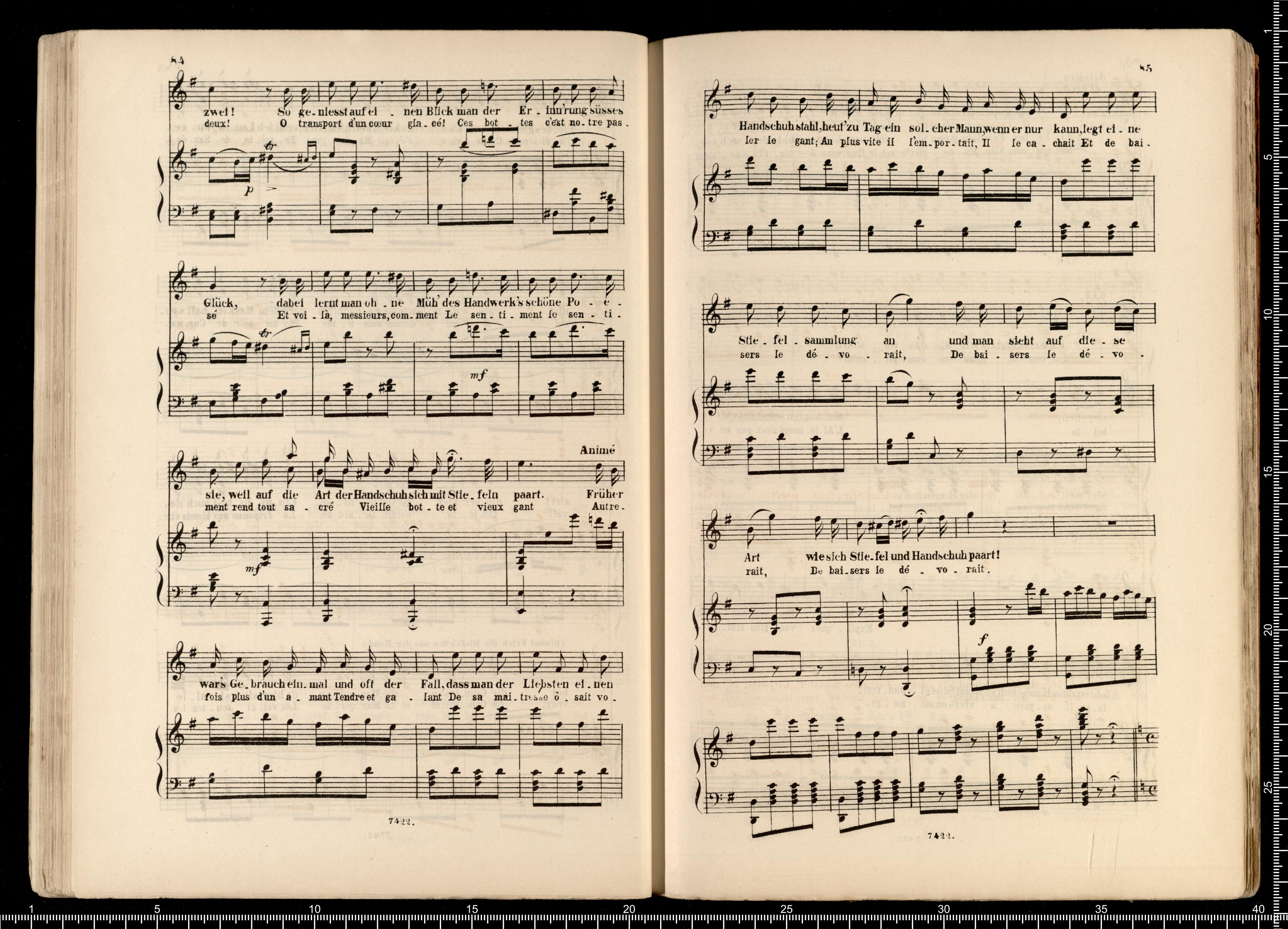 Biblithek | moderner Opern | im vollständigen Auszügen | für Gesang | und Pianoforte. | Offenbach, Pariser Leben. | ED.BOTE&G.BOCK. | Berlin | und Posen. | Lith. Anst. v. C.G.Röder,Leipzig