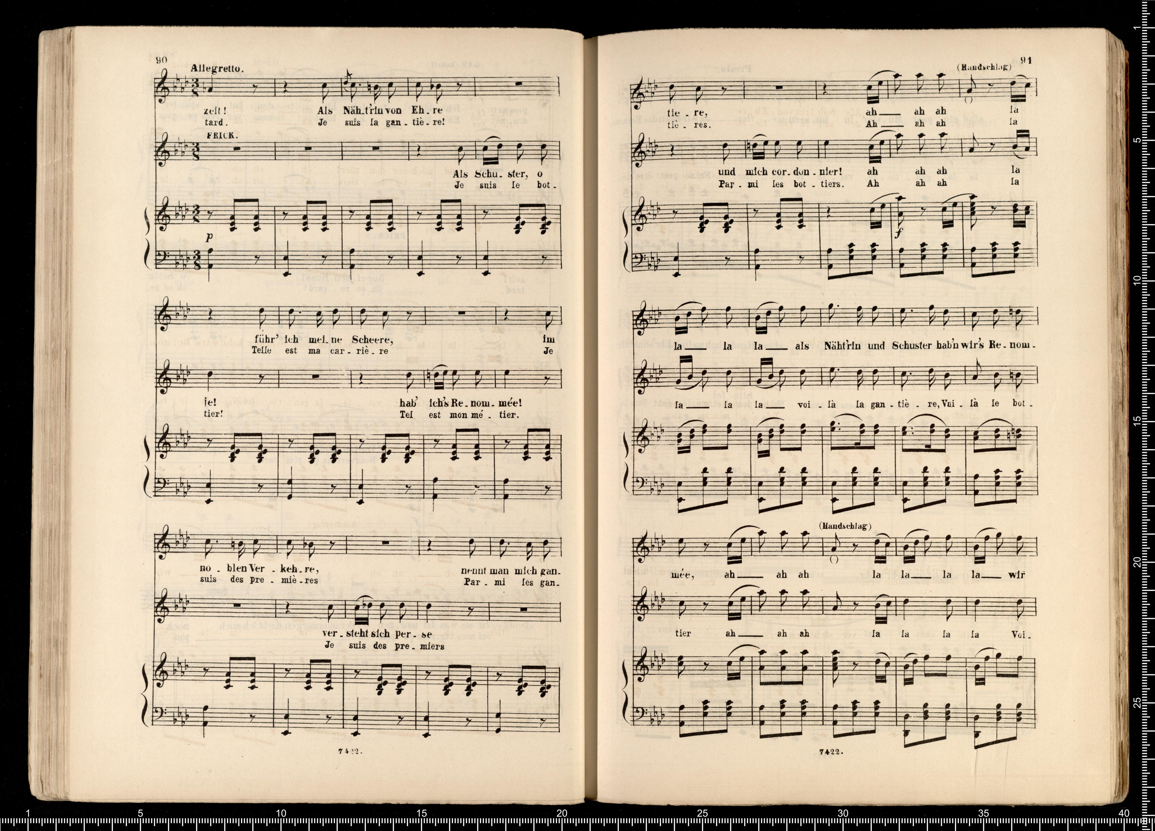 Biblithek | moderner Opern | im vollständigen Auszügen | für Gesang | und Pianoforte. | Offenbach, Pariser Leben. | ED.BOTE&G.BOCK. | Berlin | und Posen. | Lith. Anst. v. C.G.Röder,Leipzig