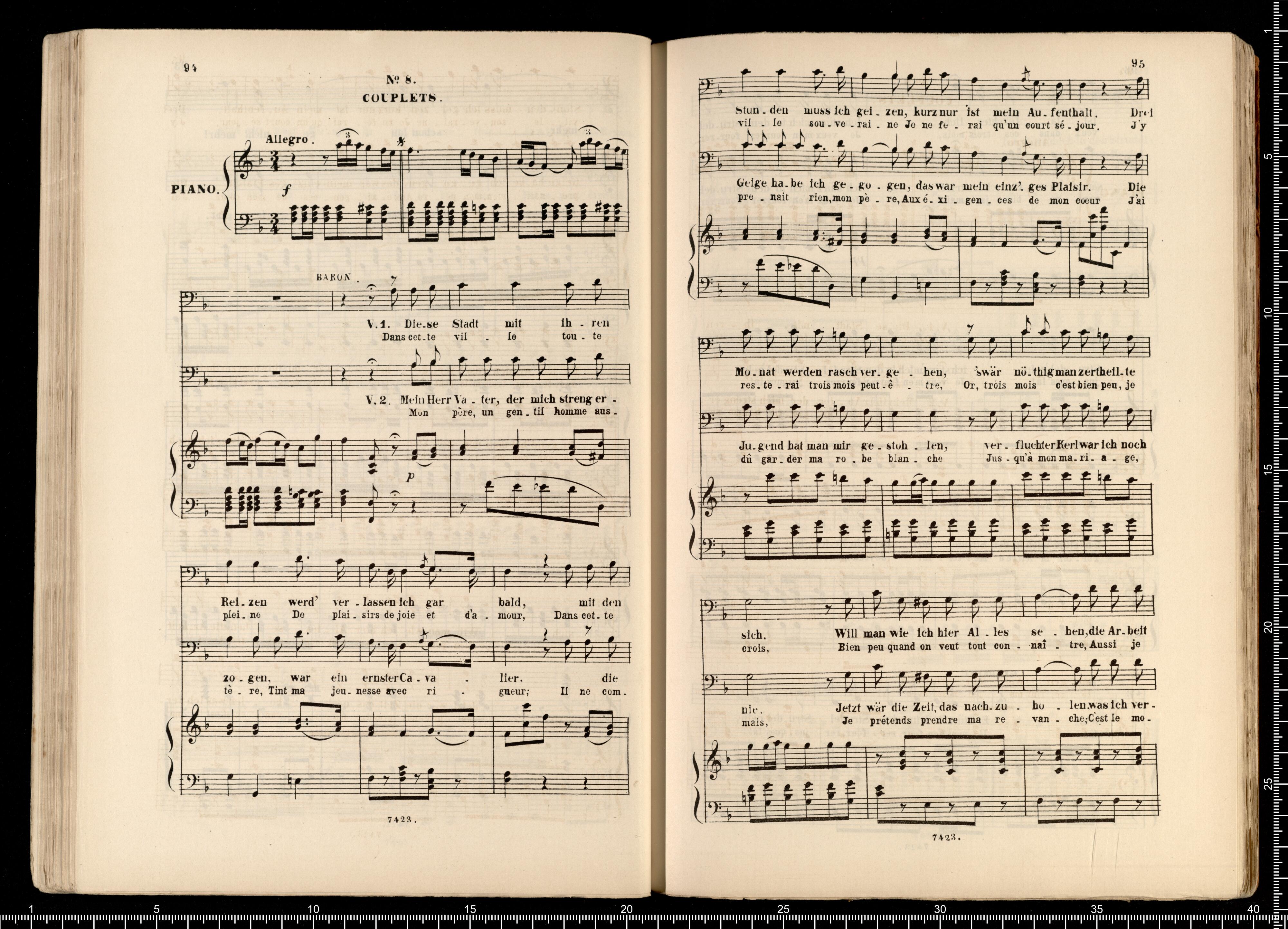Biblithek | moderner Opern | im vollständigen Auszügen | für Gesang | und Pianoforte. | Offenbach, Pariser Leben. | ED.BOTE&G.BOCK. | Berlin | und Posen. | Lith. Anst. v. C.G.Röder,Leipzig