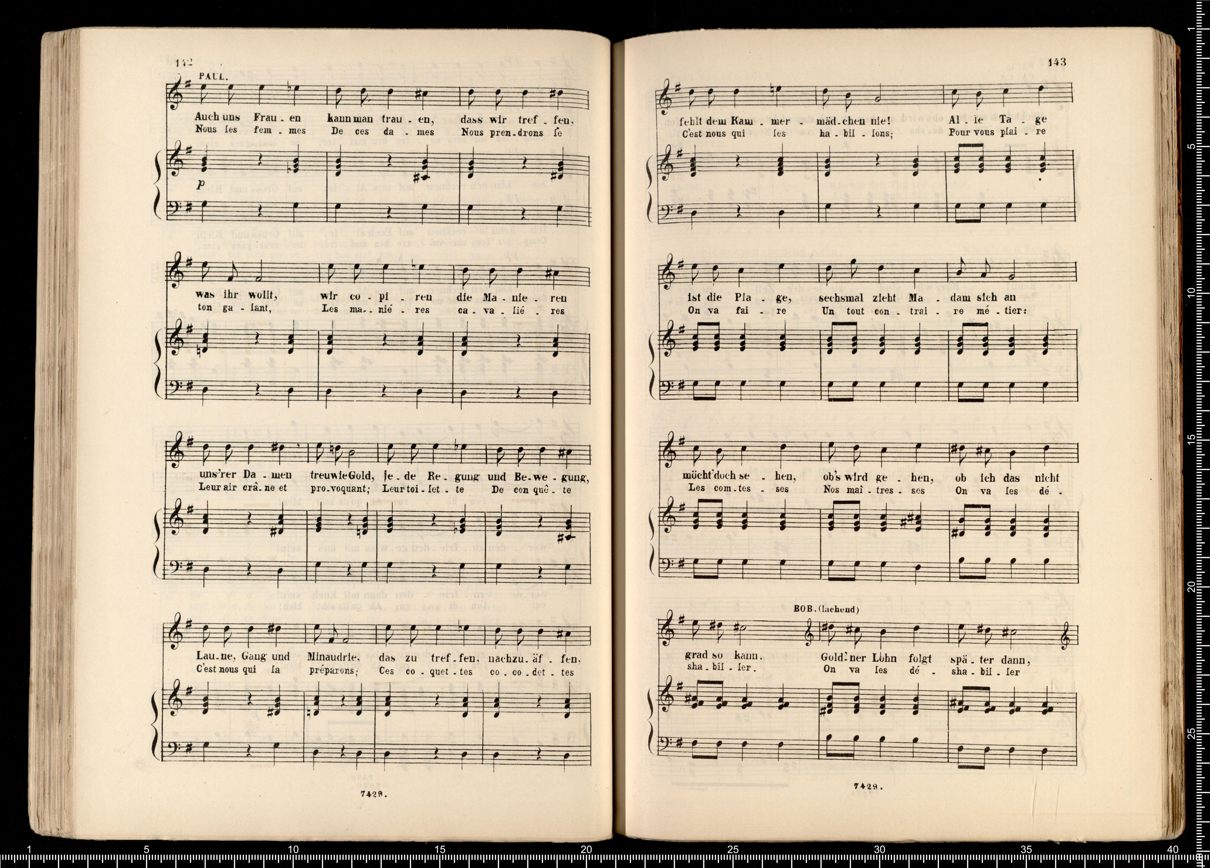 Biblithek | moderner Opern | im vollständigen Auszügen | für Gesang | und Pianoforte. | Offenbach, Pariser Leben. | ED.BOTE&G.BOCK. | Berlin | und Posen. | Lith. Anst. v. C.G.Röder,Leipzig