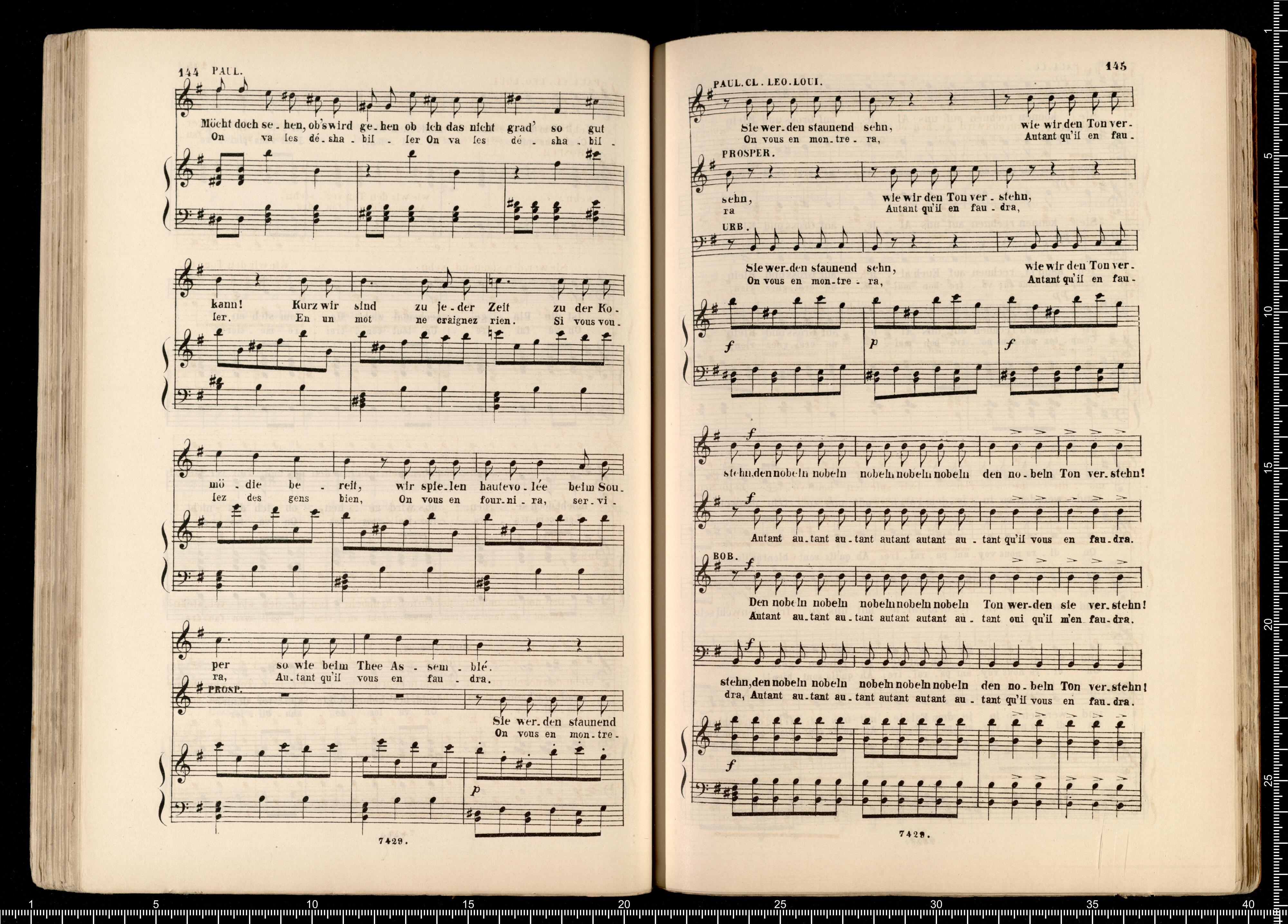Biblithek | moderner Opern | im vollständigen Auszügen | für Gesang | und Pianoforte. | Offenbach, Pariser Leben. | ED.BOTE&G.BOCK. | Berlin | und Posen. | Lith. Anst. v. C.G.Röder,Leipzig
