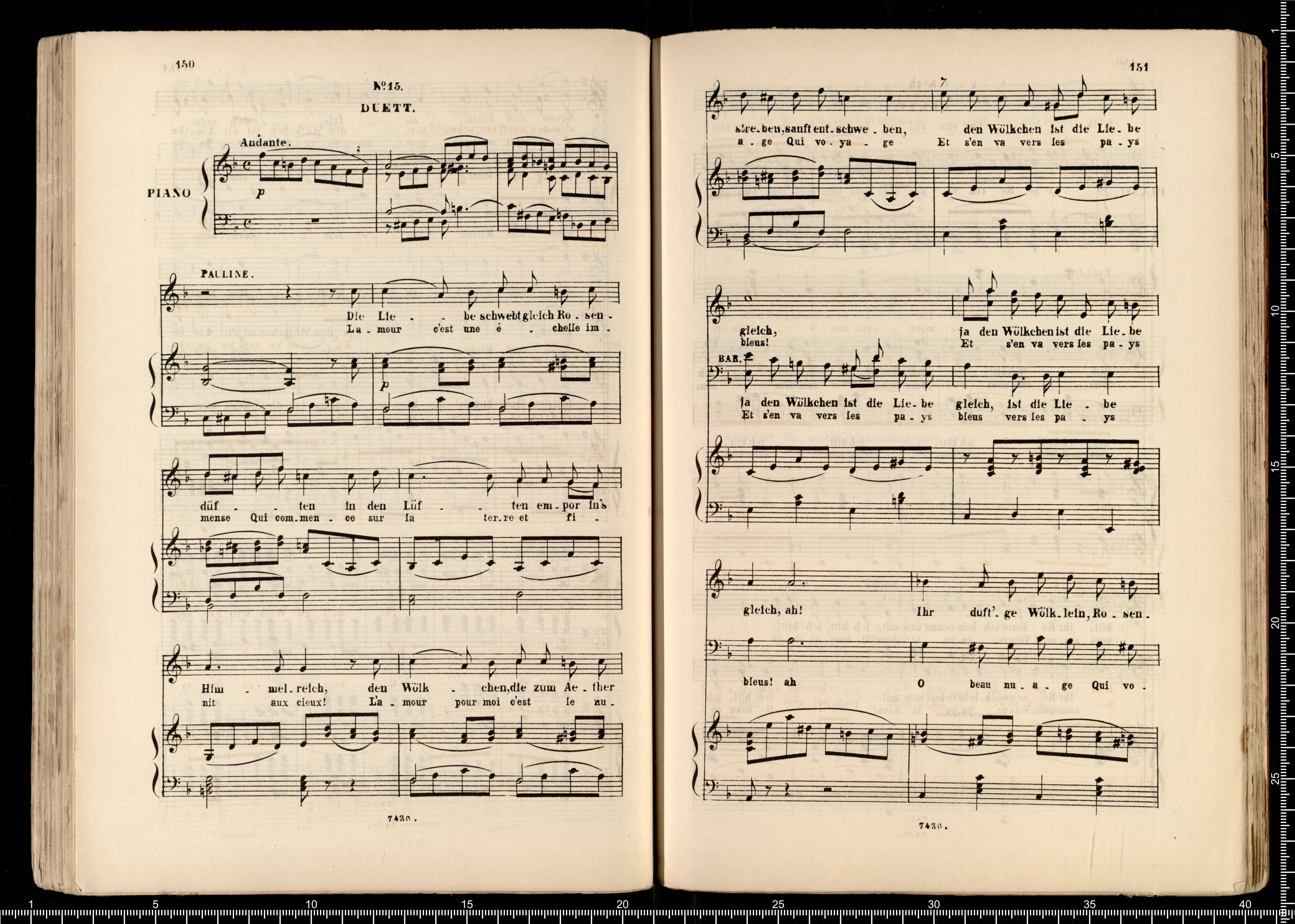 Biblithek | moderner Opern | im vollständigen Auszügen | für Gesang | und Pianoforte. | Offenbach, Pariser Leben. | ED.BOTE&G.BOCK. | Berlin | und Posen. | Lith. Anst. v. C.G.Röder,Leipzig