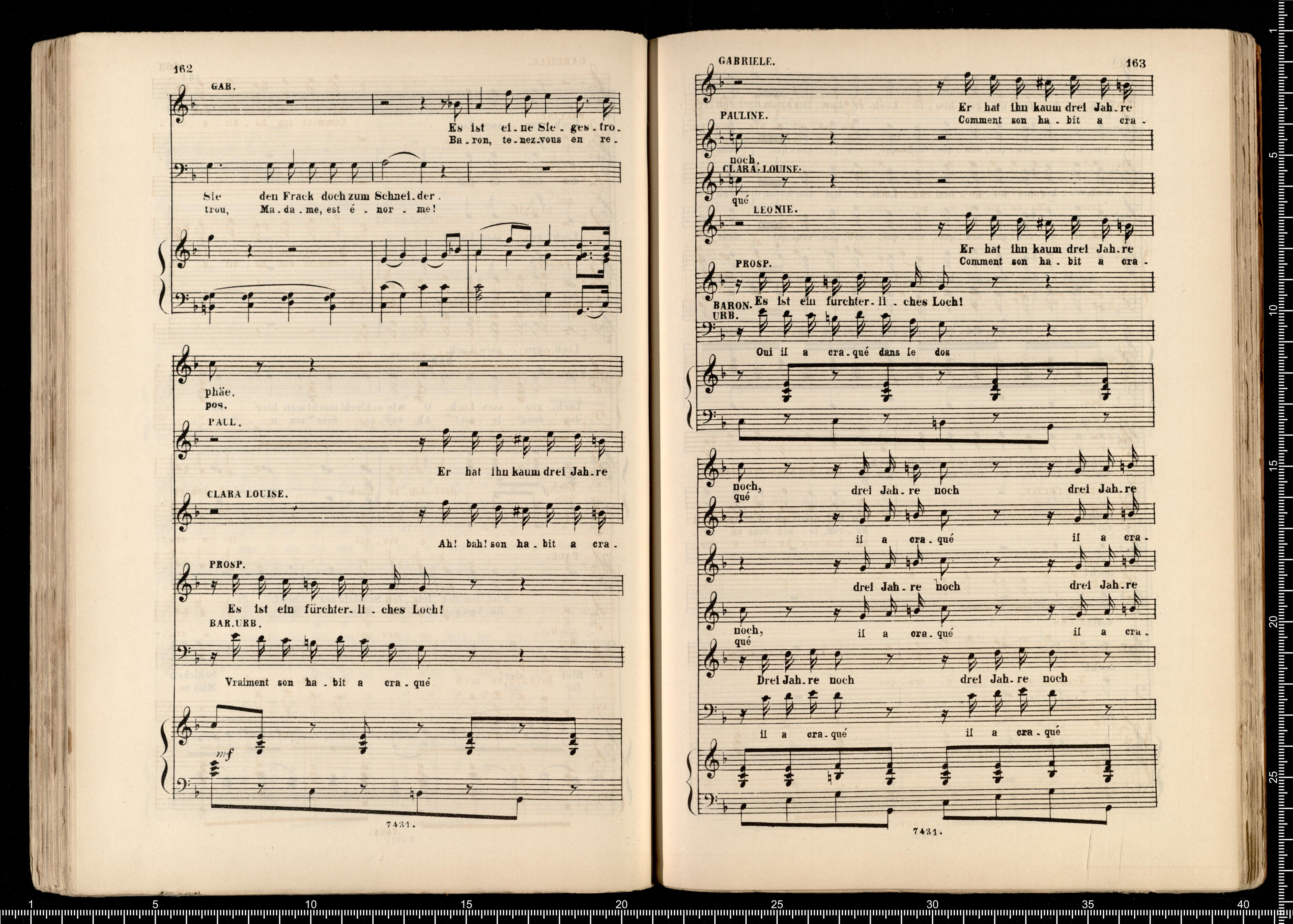 Biblithek | moderner Opern | im vollständigen Auszügen | für Gesang | und Pianoforte. | Offenbach, Pariser Leben. | ED.BOTE&G.BOCK. | Berlin | und Posen. | Lith. Anst. v. C.G.Röder,Leipzig