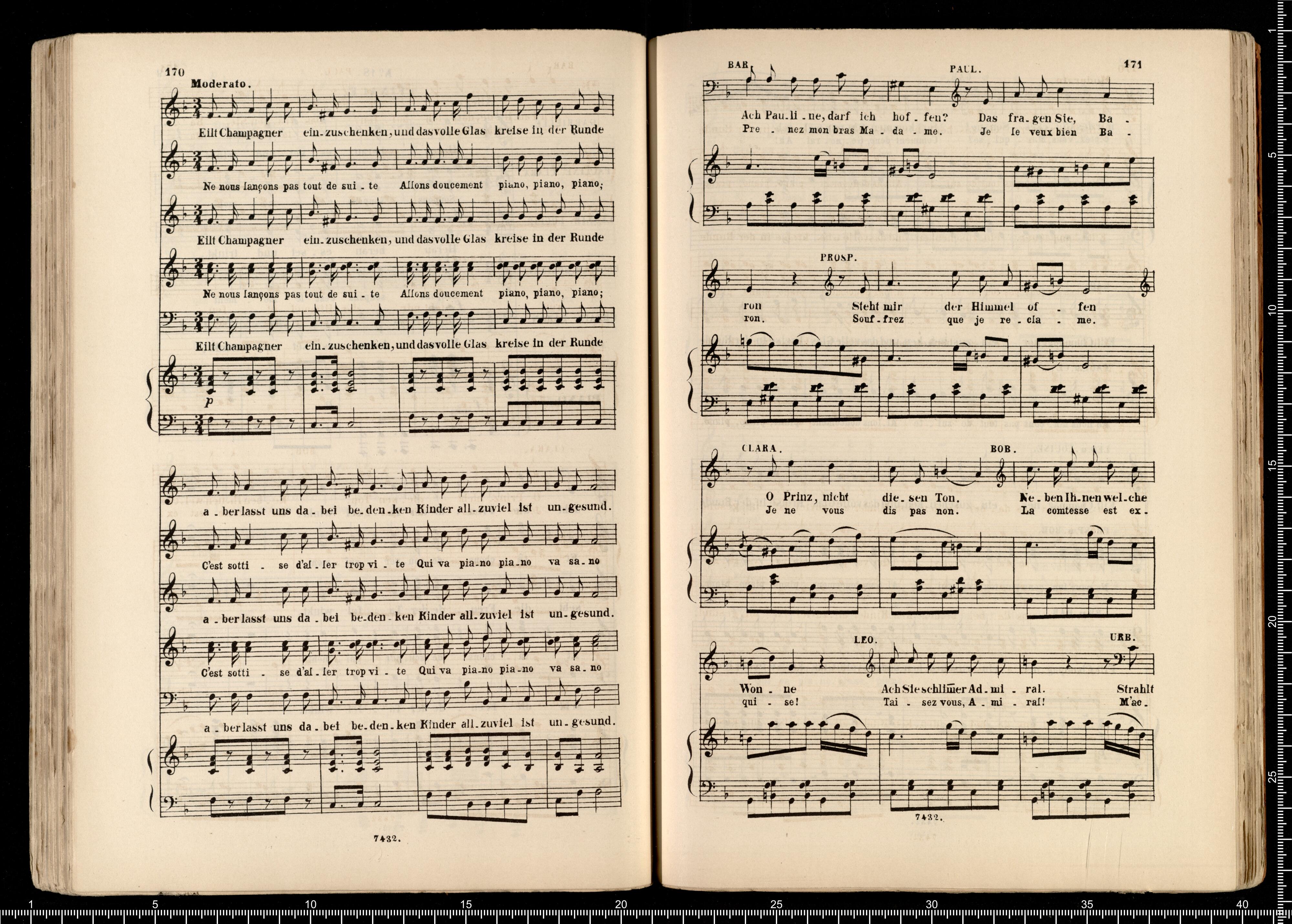 Biblithek | moderner Opern | im vollständigen Auszügen | für Gesang | und Pianoforte. | Offenbach, Pariser Leben. | ED.BOTE&G.BOCK. | Berlin | und Posen. | Lith. Anst. v. C.G.Röder,Leipzig