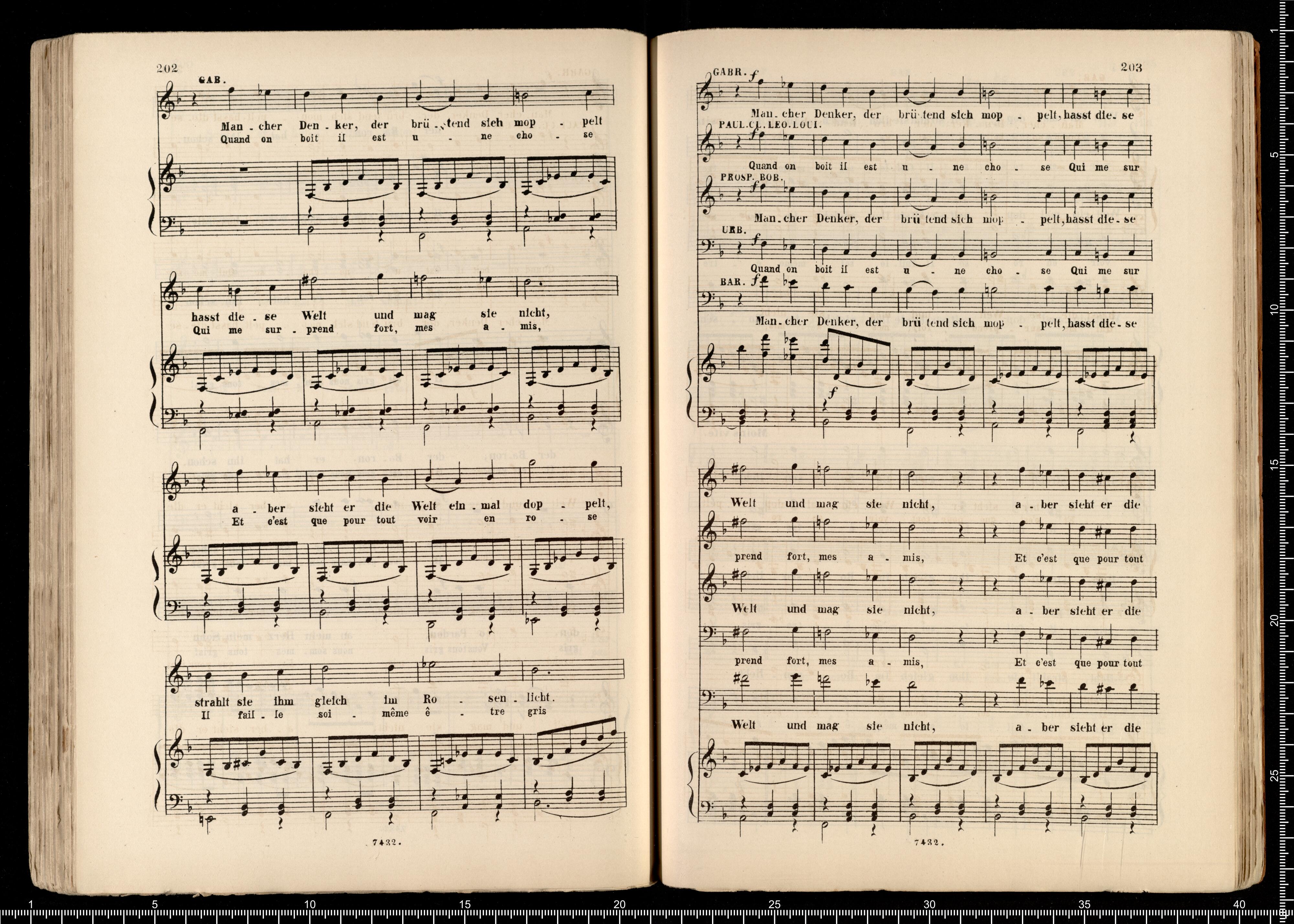 Biblithek | moderner Opern | im vollständigen Auszügen | für Gesang | und Pianoforte. | Offenbach, Pariser Leben. | ED.BOTE&G.BOCK. | Berlin | und Posen. | Lith. Anst. v. C.G.Röder,Leipzig