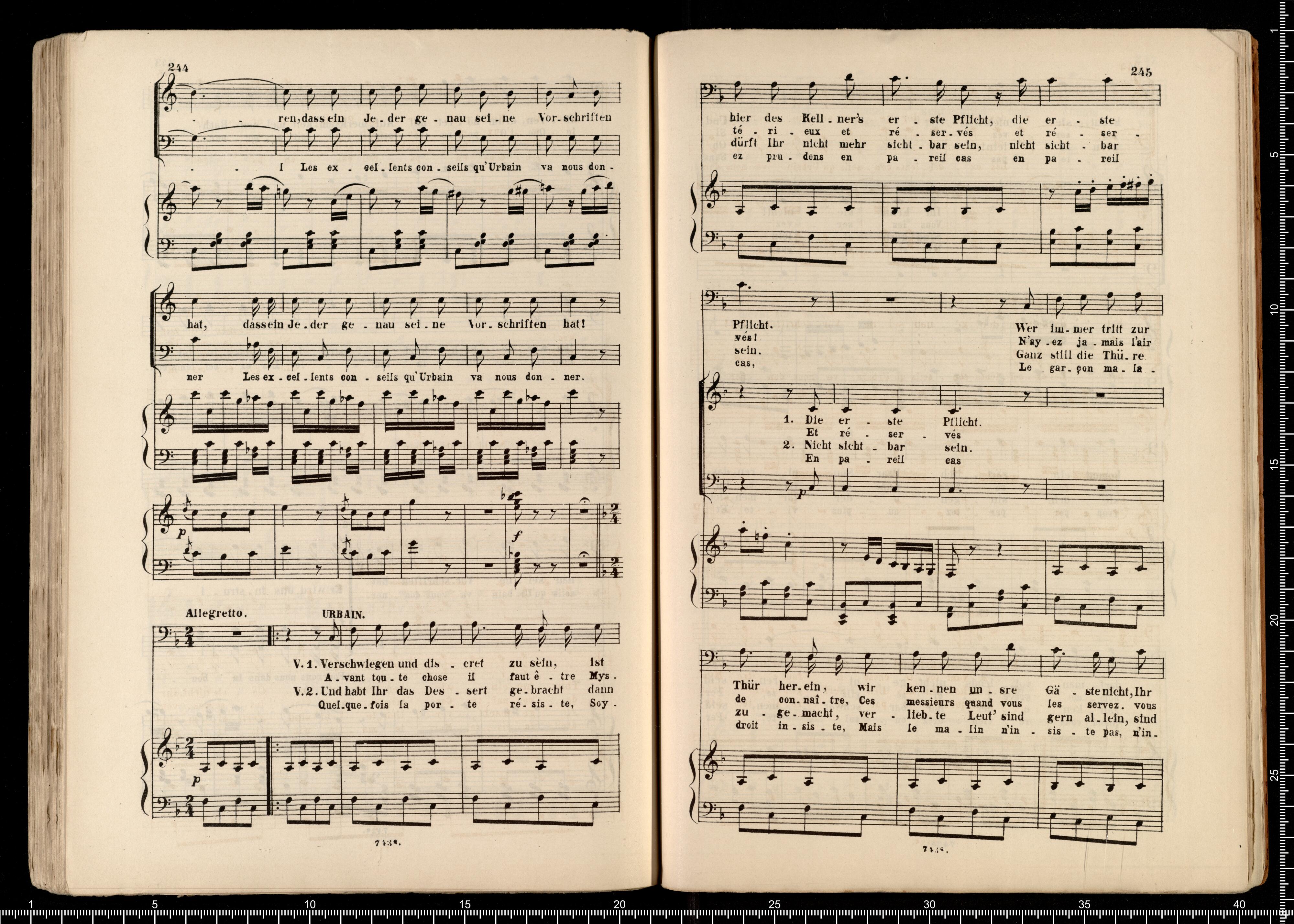 Biblithek | moderner Opern | im vollständigen Auszügen | für Gesang | und Pianoforte. | Offenbach, Pariser Leben. | ED.BOTE&G.BOCK. | Berlin | und Posen. | Lith. Anst. v. C.G.Röder,Leipzig